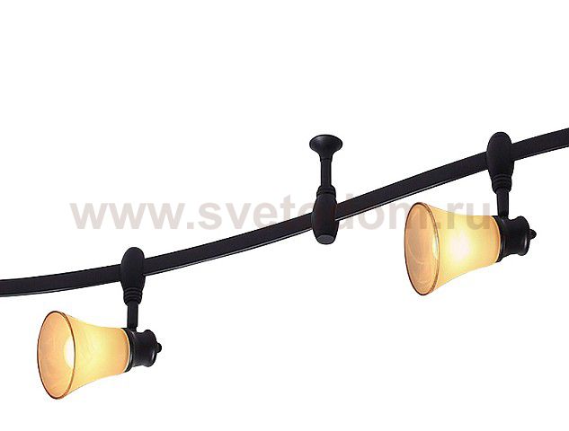 Трековая система 220V на гибкой шине длиной 200см, в комплекте 4 стойки крепления шины и 4 головки, размер головки 12см, лампы Е14 или R50, "Алебастровое " стекло с золотистой полоской и классический дизайн Комментарий