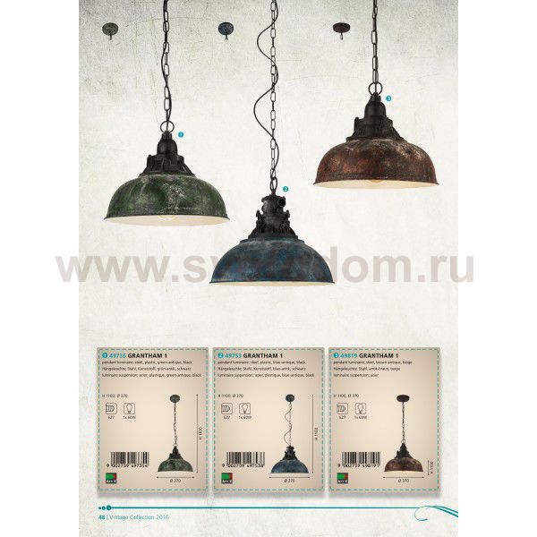 Подвесной светильник Eglo 49753 GRANTHAM 1 отличается регулировкой по высоте и сделает Ваш интерьер современным, стильным и запоминающимся! Наиболее функционально и эстетически привлекательно модель будет смотреться в гостиной, зале, холле или другой комнате. А в комплекте с люстрой, бра или торшером из этой же коллекции сделает ремонт по-дизайнерски профессиональным и законченным.