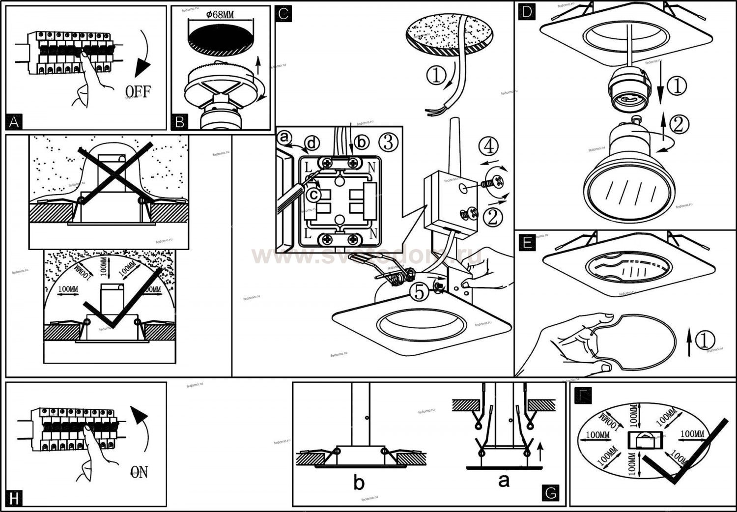Данный размер указывает какое отверстие необходимо сделать для правильного монтажа. Зачастую светильники выбирают после ремонта и сделанных монтажных отверстий, тогда подбор осуществляется строго в размер +/- 2-5мм.