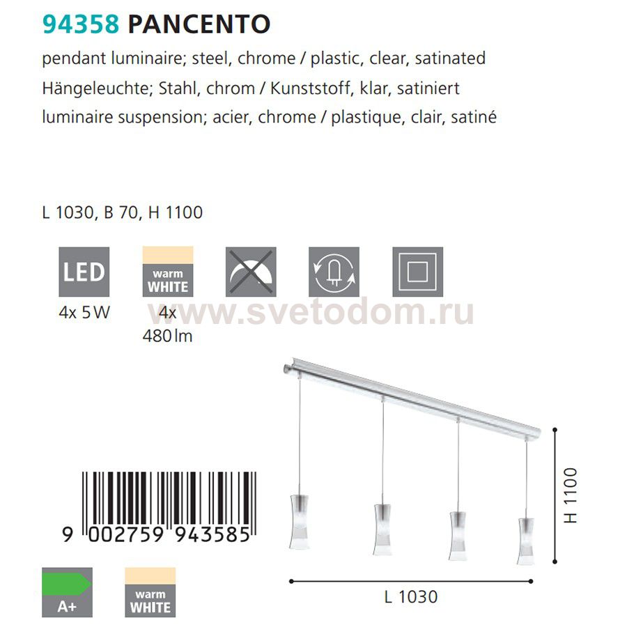 Подвесной потолочный светильник (люстра) PANCENTO светодиодный Комментарий