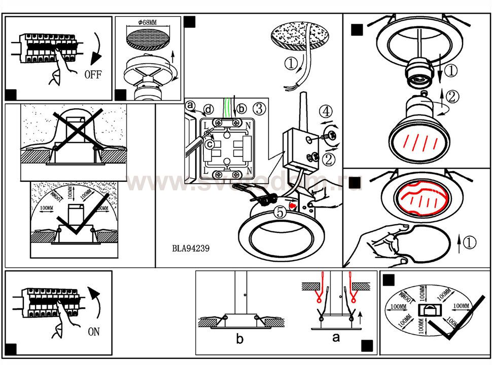Данный размер указывает какое отверстие необходимо сделать для правильного монтажа. Зачастую светильники выбирают после ремонта и сделанных монтажных отверстий, тогда подбор осуществляется строго в размер +/- 2-5мм.