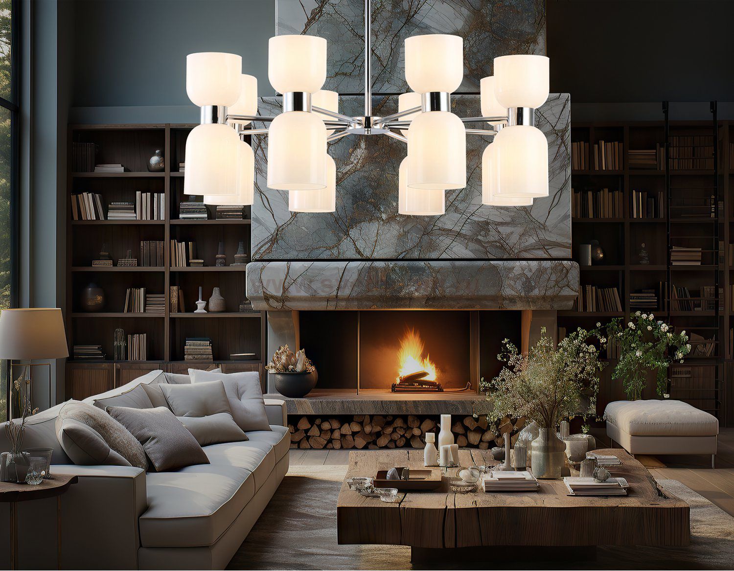 Люстра на штанге из коллекции HIGH LIGHT. Модель LH56085 представлена в стиле модерн. Люстра выполнена из плафонов белого матового стекла и металлического каркаса цвета хром. Для данной модели подойдут лампы с цоколем Е14. Люстра будет прекрасным дополнением в любом помещении.