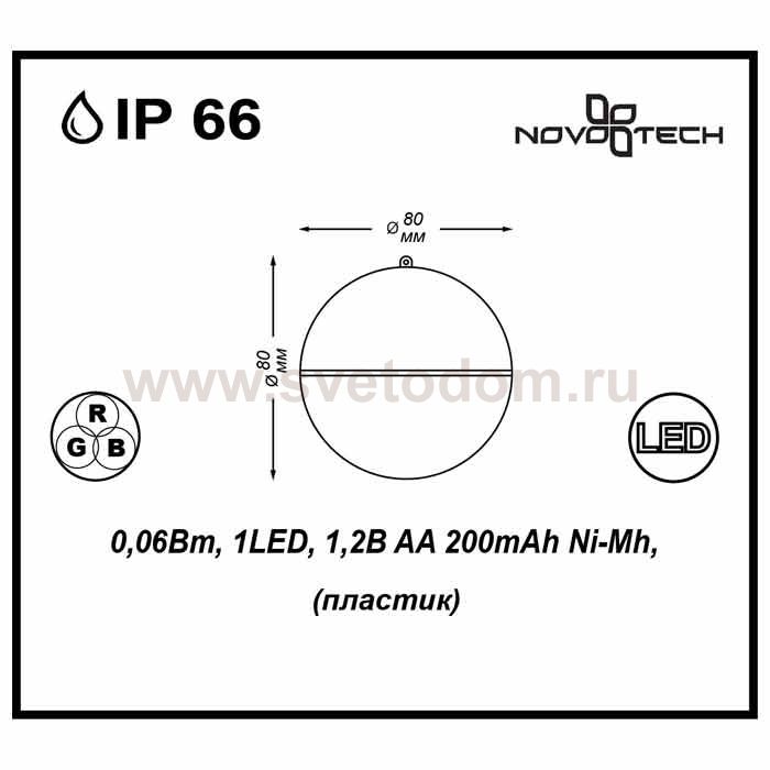 Светильник садовый на солнечных батареях с выключателем для подсветки водоемов модели Novotech 357215 из серии SOLAR отличается следующим качеством: Светильник, сделанный из пластика, имеет высокие эксплуатационные показатели, что объясняется его повышенной стойкостью к механическим повреждениям и защищенностью от факторов внешней среды. Безопасность (отсутстствие внешних проводов), простота в установке и многократное перемещение (по необходимости), экологичность, долговечность, прочность, экономичность, эффектность (отличное дополнение любого дома или участка.) Срок службы светодиодов - 30000 часов. Время заряда 8 - 10 часов. Время автономной работы - 6 часов. Диапазон рабочих температур от -10 до +50 градусов Цельсия.