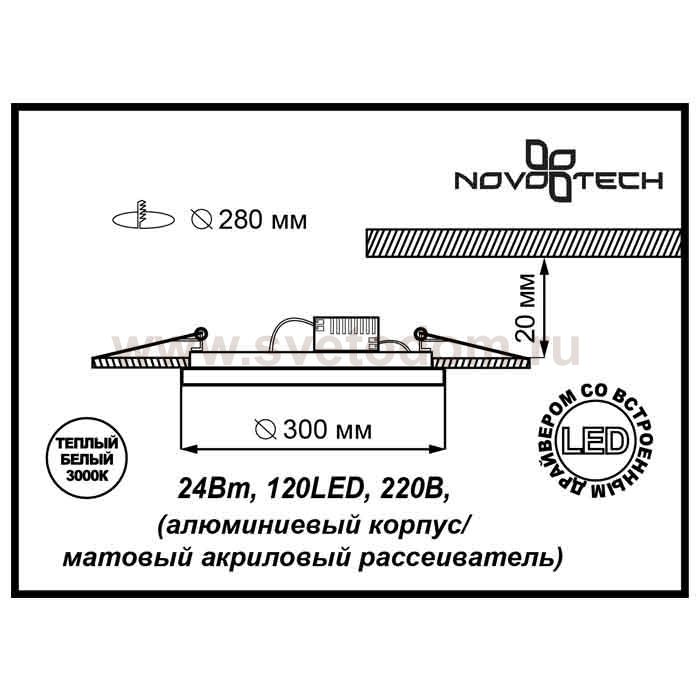 Встраиваемый светодиодный светильник со встроенным драйвером модели Novotech 357292 из серии LANTE отличается следующим качеством: Корпус светильника произведен из алюминия. Это металл, основными достоинствами которого являются — устойчивость к практически всем видам негативного воздействия окружающей среды, коррозии. Небольшой вес, по сравнению с другими видами металла и экологическая безопасность материала. Рассеиватель сделан из акрила. Основными свойствами которого являются: высокая светопропускаемость — 92 %, которая не изменяется с течением времени, сохраняя свой оригинальный цвет, сопротивляемость удару в 5 раз больше, чем у стекла, устойчивость к воздействию влаги, бактерий и микроорганизмов, морозостойкость и экологичность. Срок службы светодиодов до 25000 часов.