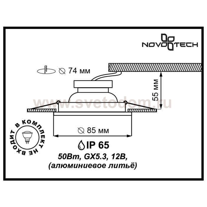 369305 SPOT NT09 251 белый свет Встраиваемый НП светильник IP65 GX5.3 50W 12V AQUA Штрих-код