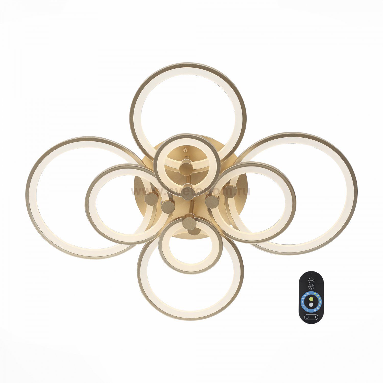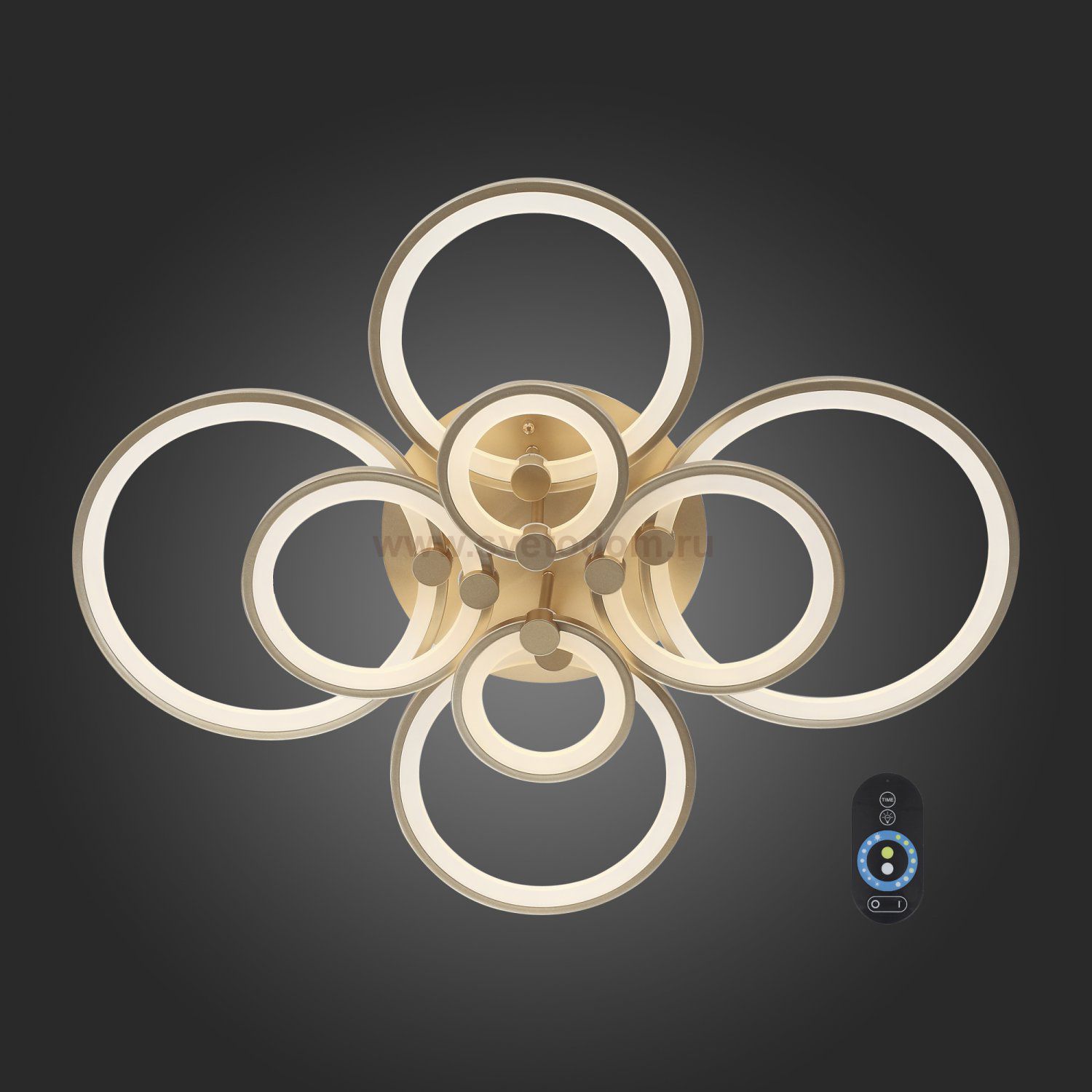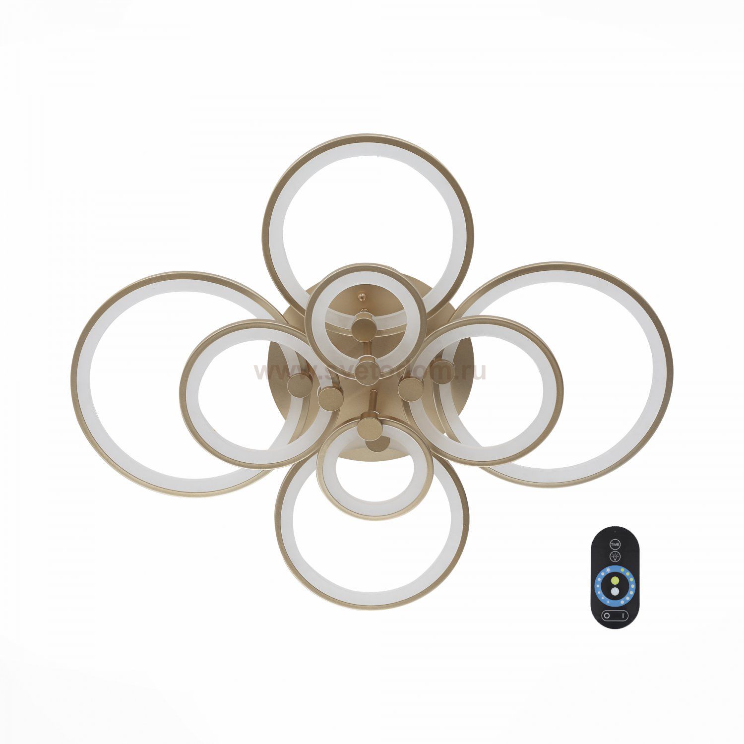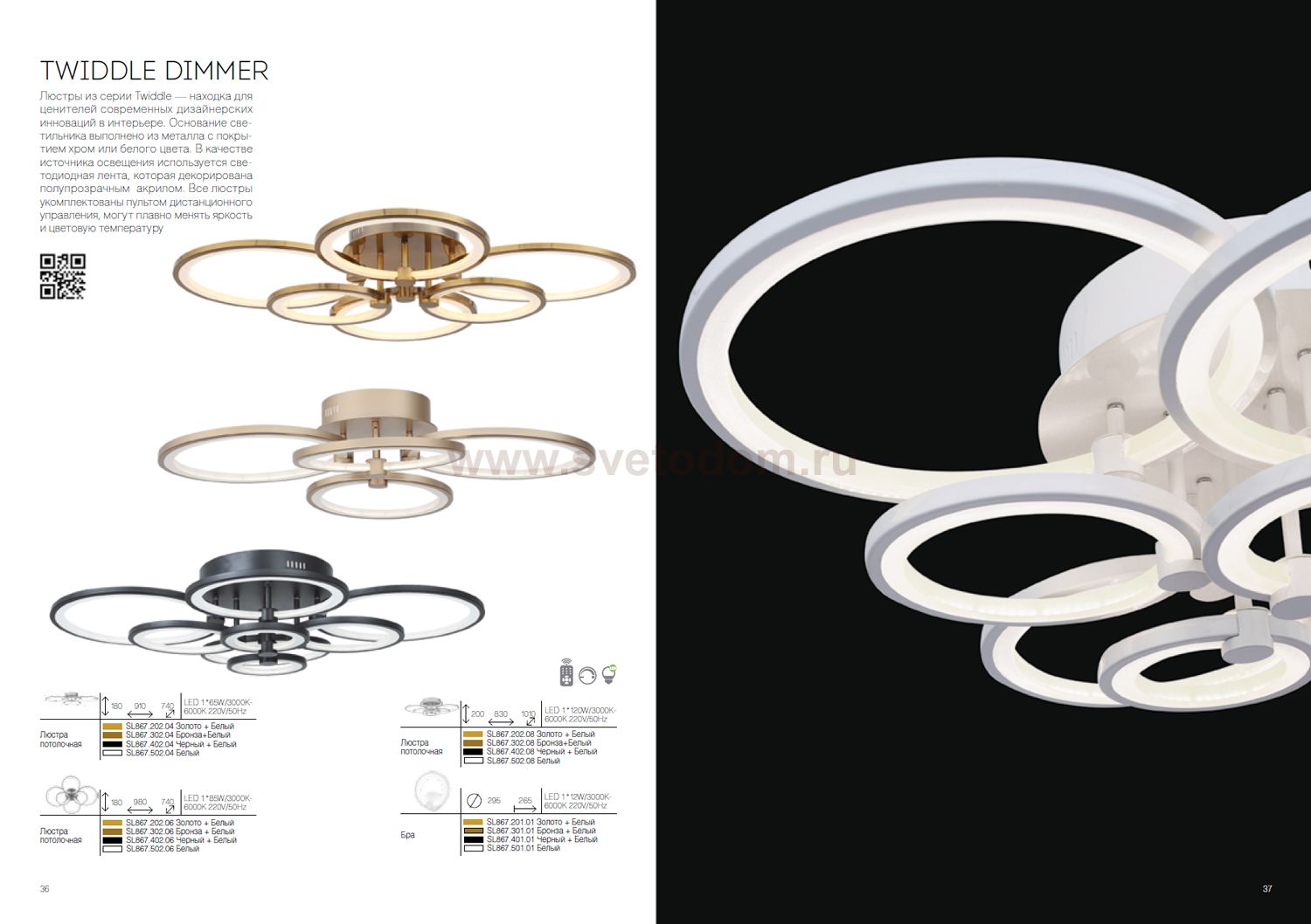 Если Вы настроены купить светильник модели SL86720208, то обратите внимание: Люстры из серии Twiddle - находка для ценителей современных дизайнерских инноваций в интерьере. Основание светильника выполнено из металла и представленно в пяти цветах (белый, черный, хром, золото, бронза). В качестве источника освещения используется светодиодная лента, которая декорирована полупрозрачным акрилом. Данная модель оснащена пультом, с помощью которого можно регулировать яркость и цветовую температуру свечения 3000K/4100K/6000K.