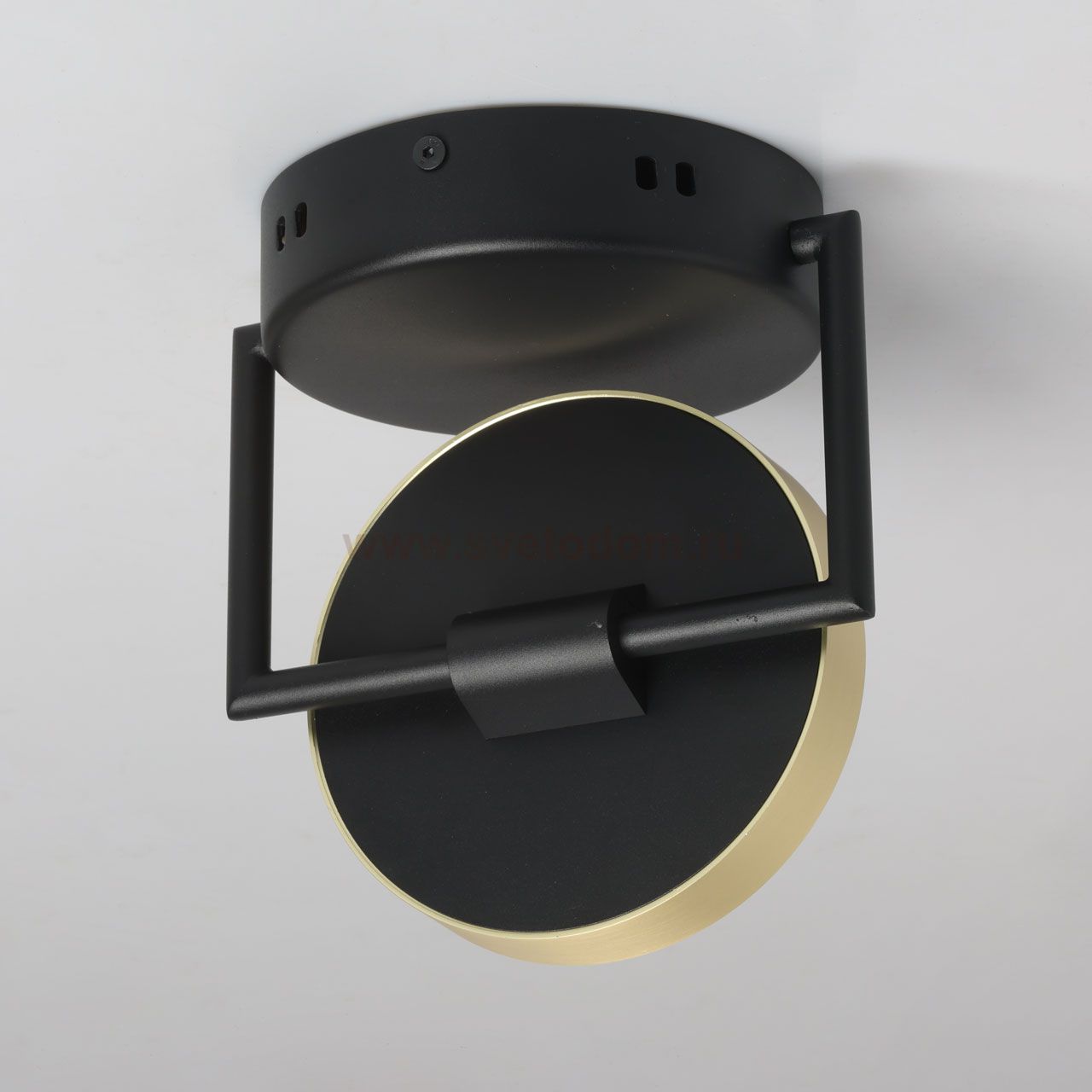 Металлическое основание потолочного светильника обработано по технологии порошкового окрашивания в черный цвет. Корпус плафона гальванизирован в цвет золота. Светодиодные источники света закрыты белым матовым акрилом. Комментарий