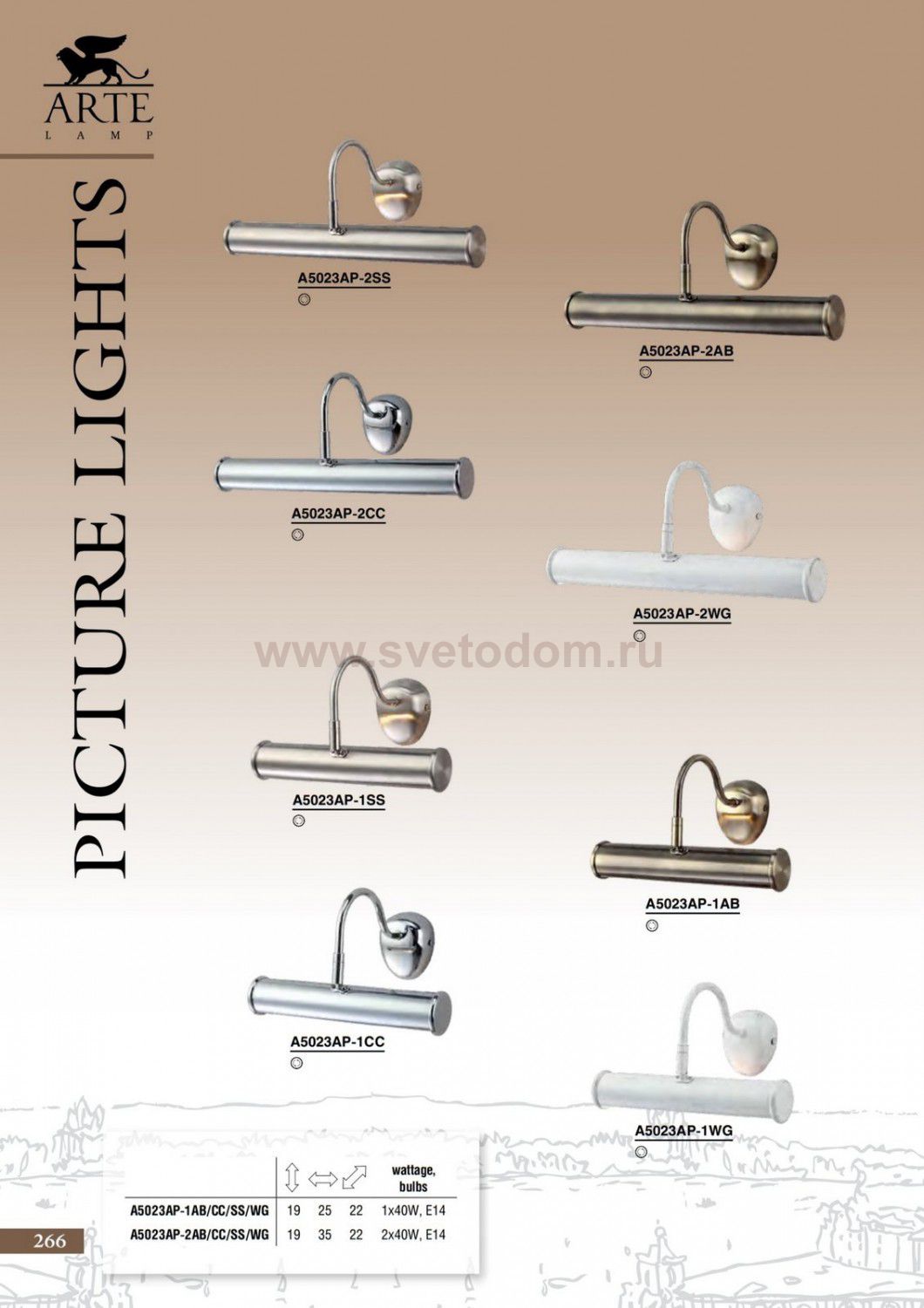 Светильник настенный Arte lamp A5023AP-2WG Picture light сделает Ваш интерьер современным, стильным и запоминающимся! Наиболее функционально и эстетически привлекательно модель будет смотреться в гостиной, зале, холле или другой комнате. А в комплекте с люстрой и торшером из этой же коллекции сделает интерьер по-дизайнерски профессиональным и законченным.