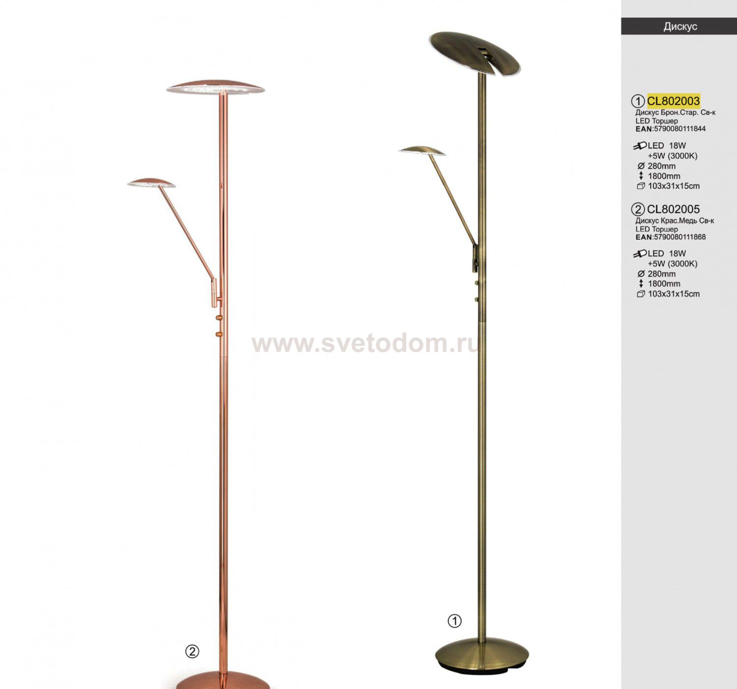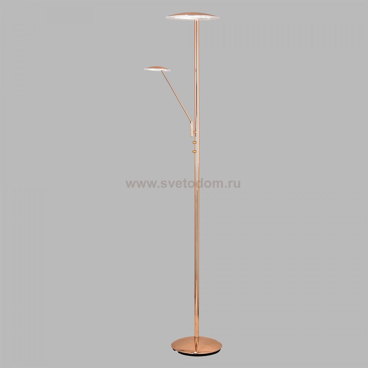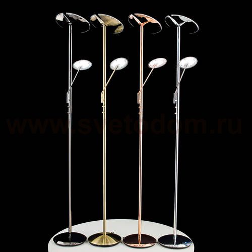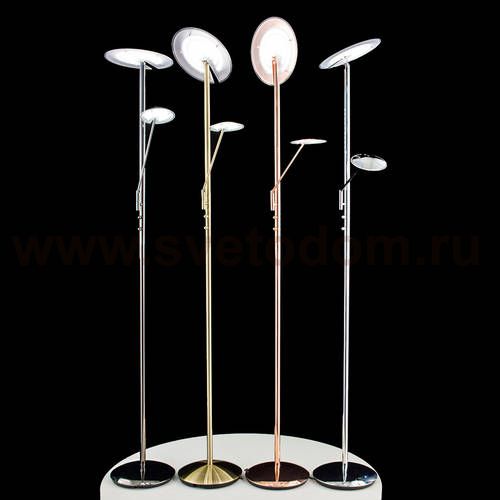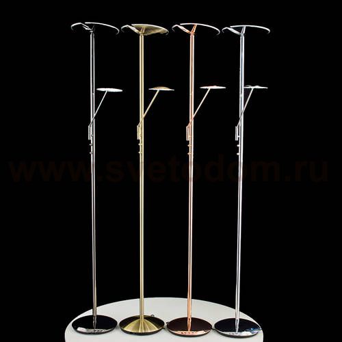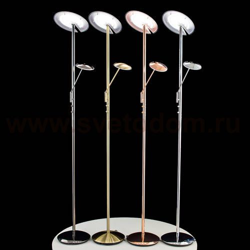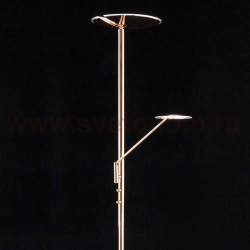 Торшер высотой 180 см с двумя регулируемыми по направлению светодиодными головами, диаметр основания 28см, потолочная голова D=28см с литым корпусом, мощностью18Вт с диммером 20-100%; голова для чтения D=13.5 см с литым корпусом, мощность 5 Вт с диммером Комментарий