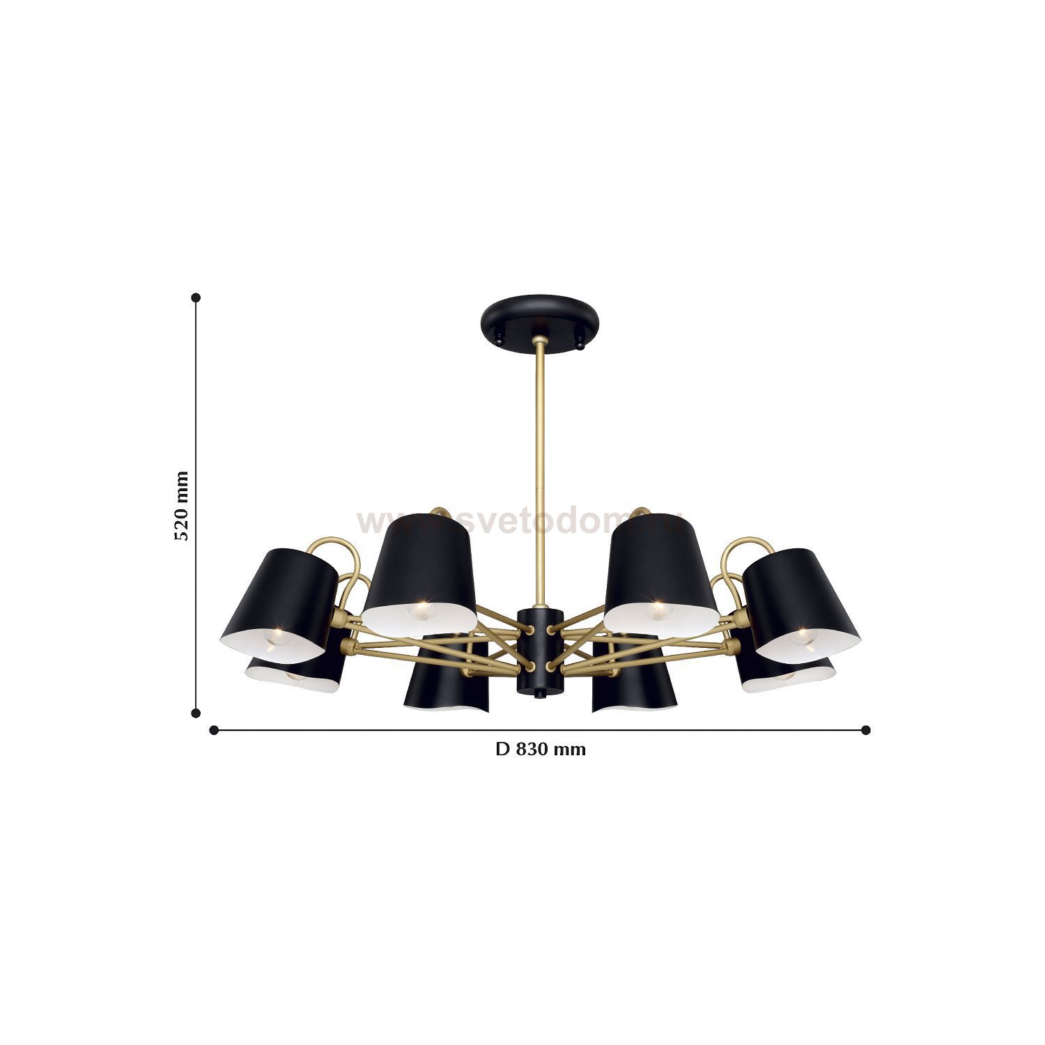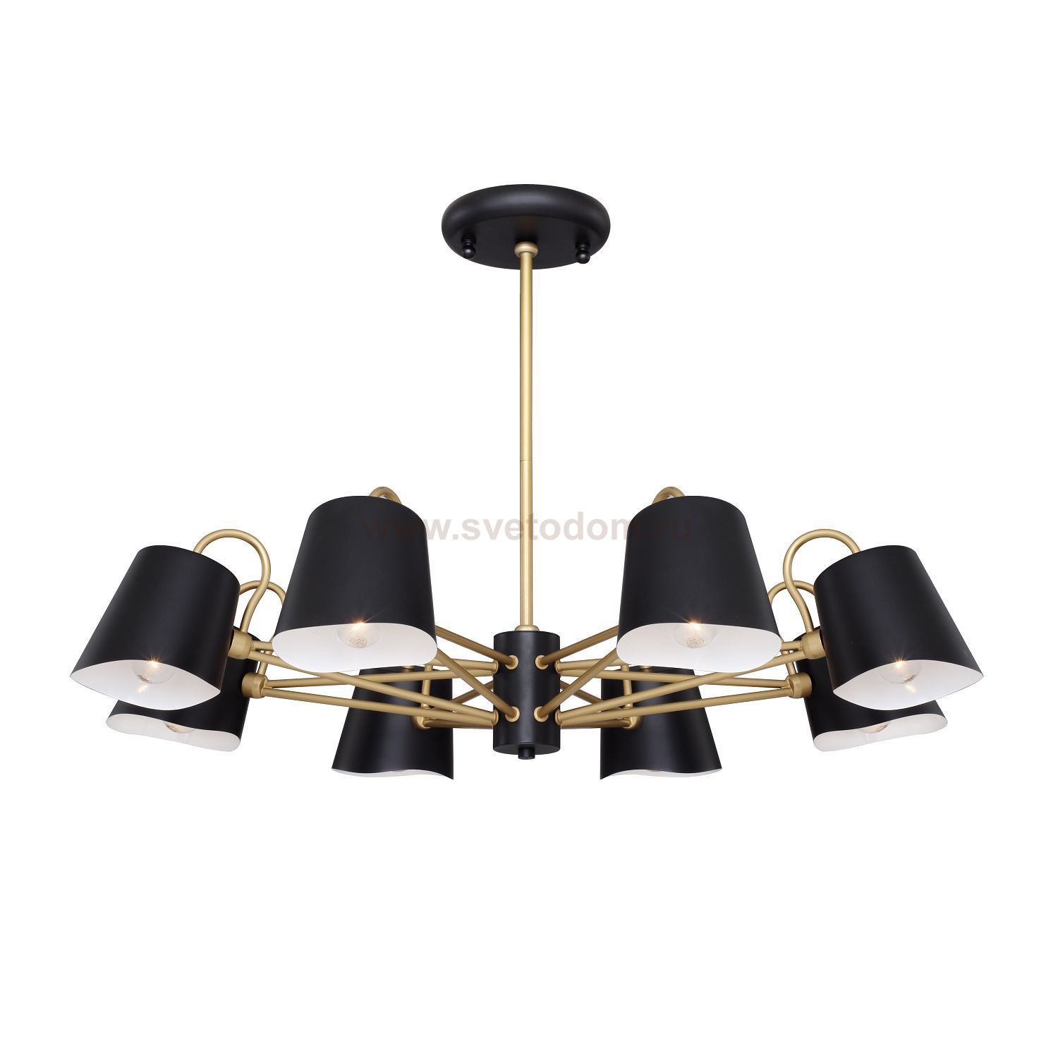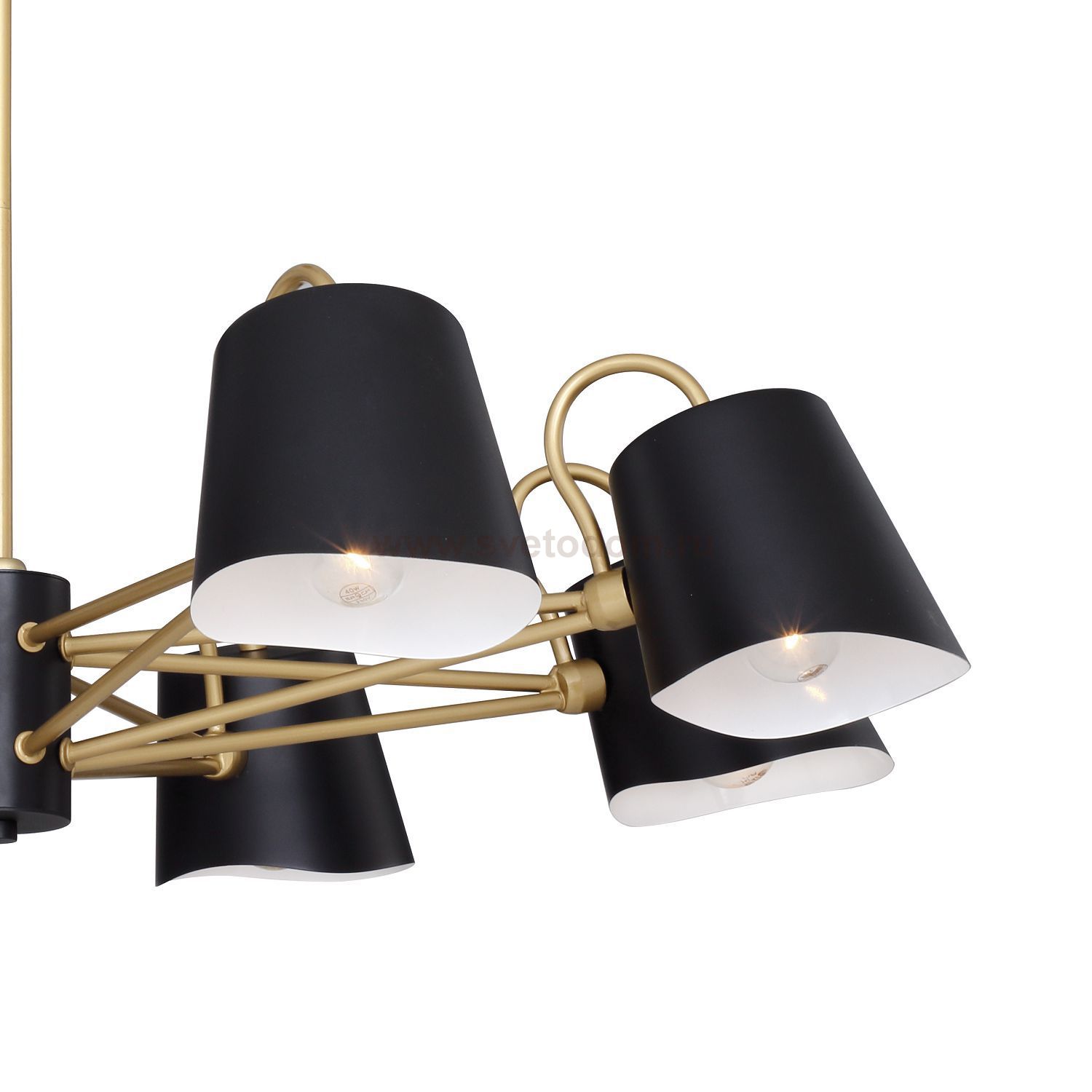 Высота люстр регулируется благодаря составной штанге. каркас окрашен в черный цвет с золотыми декоративными элементами. Материал плафона