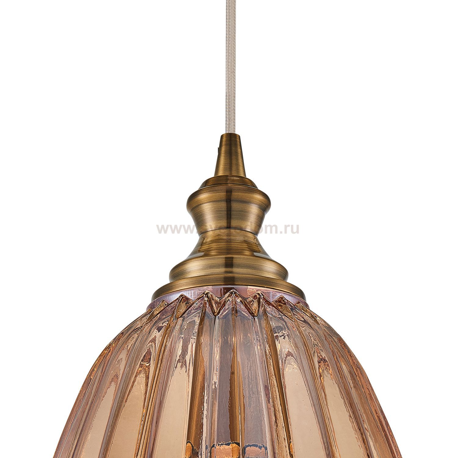 выдувное узорное стекло коньячного цвета, каркас цвета латуни Материал плафона