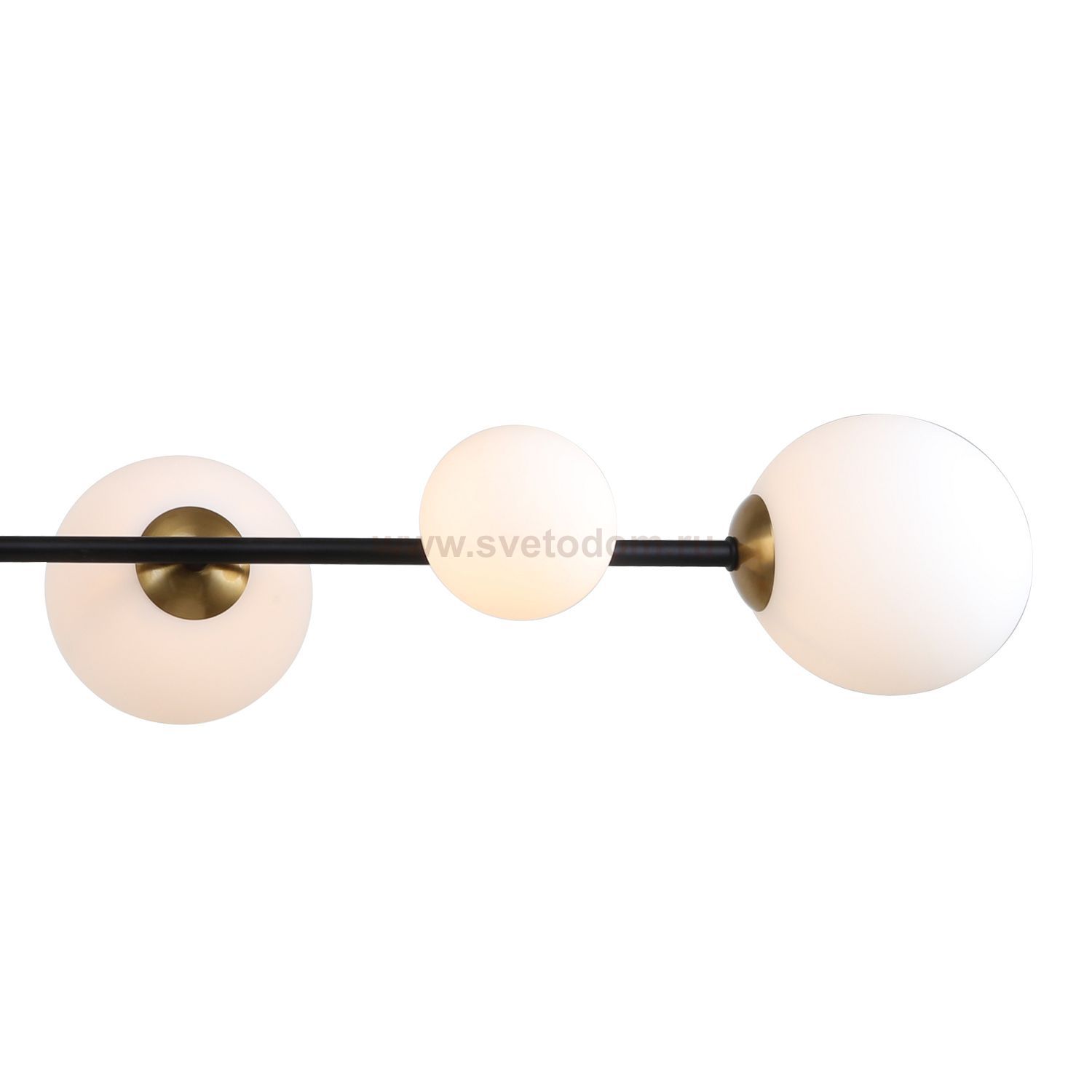 черный каркас с декоративными элементами цвета латуни, плафоны из белого стекла, лампу G9 можно менять Серия