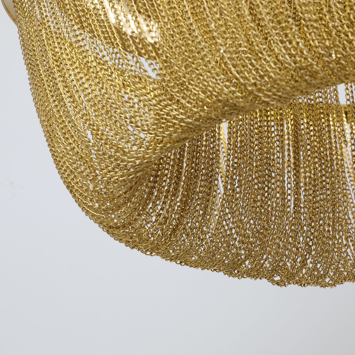 Подвесная люстра выполнена из полотна цепочек с каркасом латунного цвета, встроенная лента LED по периметру люстры внутри цепочного декора, регулируем Серия
