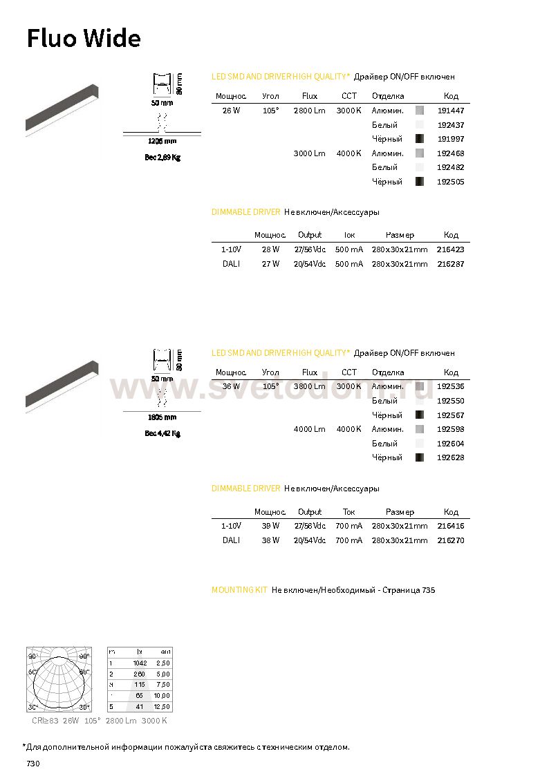 FLUO WIDE 1200 4000K ALUMINUM Гарантия