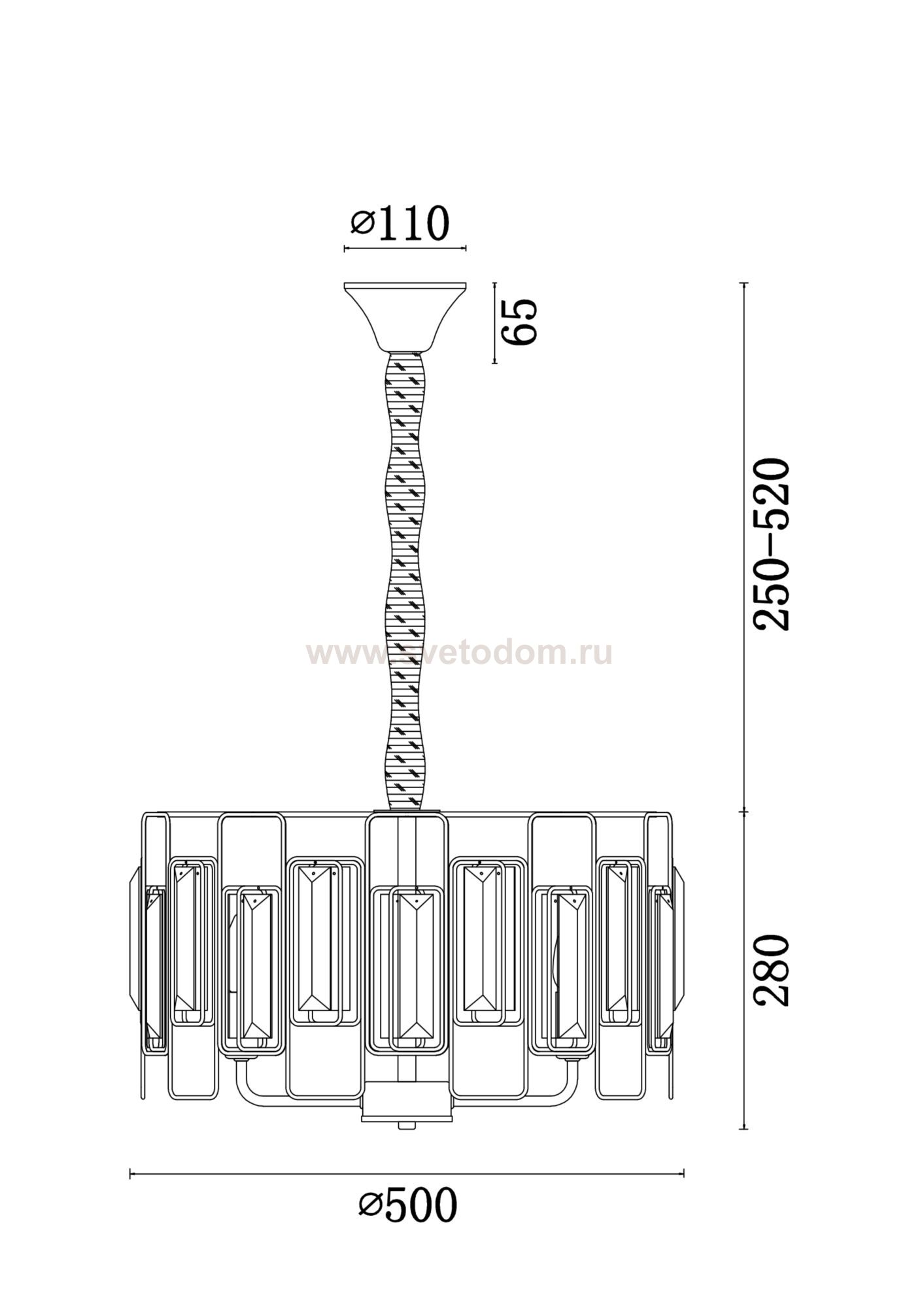 Характеризует подвесную систему светильника. Данную длину возможно изменять: дополнять или сокращать в пределах указанных данных.