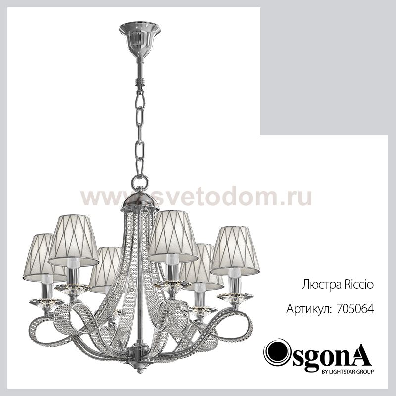 Люстра Riccio – воплощение роскоши. Металлическое основание покрыто специальным составом, который предотвращает коррозию. Кроме того, он придет светильнику красивый серебристый цвет. На этом фоне особенно волшебно выглядят ленты из граненого хрусталя, каждый из которых обработан вручную. Плафоны сделаны из матового стекла, что дает мягкий рассеянный свет.