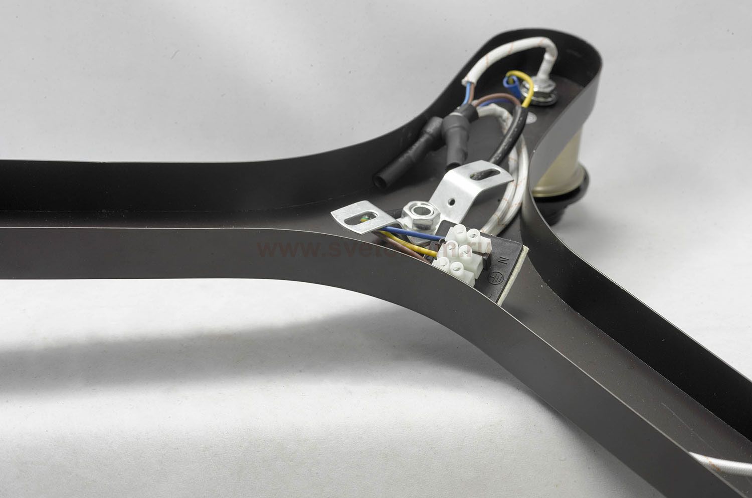 Потолочная люстра черного цвета для низких потолков полностью состоит из антивандальных элементов. Арматура и плафоны выполнены из качественного металла который не подвержен коррозии и окрашен в черный цвет. Как все брендовые изделия содержит старшую и младшую модель. В данном случае старшая с пятью плафонами, младшая с тремя.