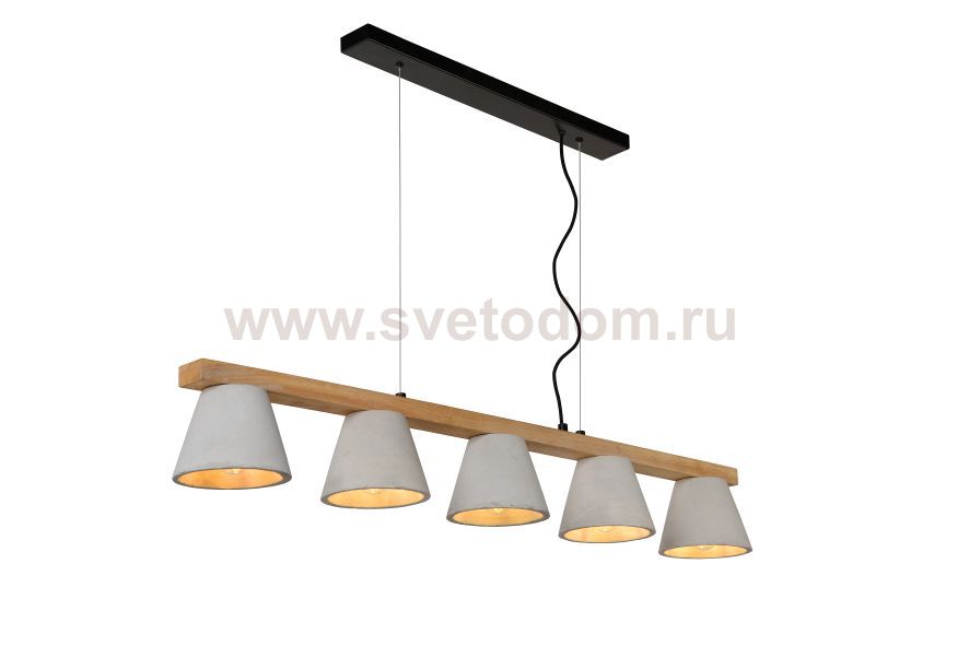Clever lighting with warm materials and warm light. Discover Possio. This pendant lamp has five light points and blends in well in a modern interior. The combination of the materials wood and concrete ensures a pleasant Scandinavian look. Also the fittings are contemporary, as they are compatible with LED-lighting. As such one can enjoy a lovely design as well as energy-saving lighting in your living, library or bedroom.