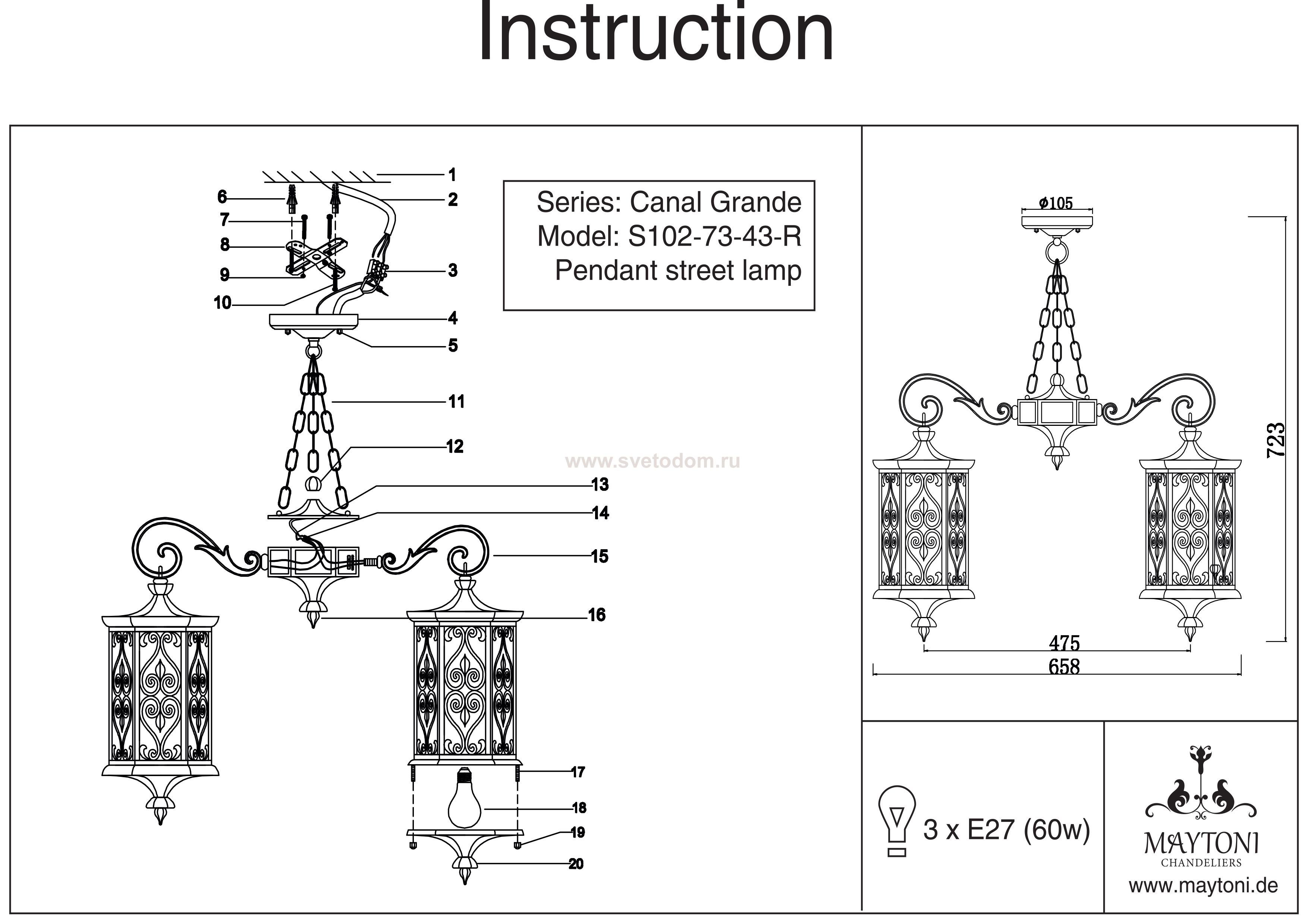 Подвесной уличный светильник Артикул производителя