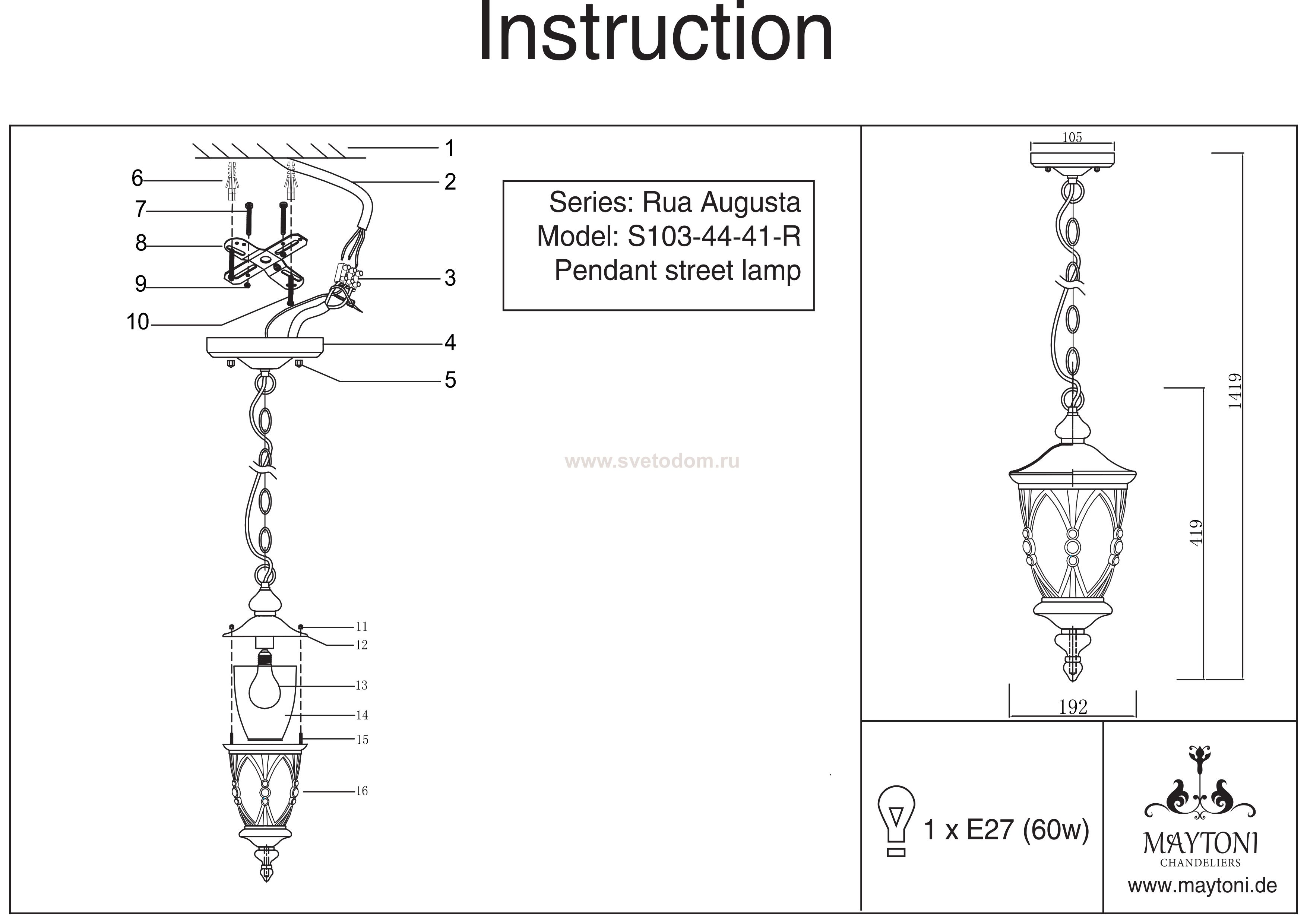 Подвесной уличный светильник Артикул производителя