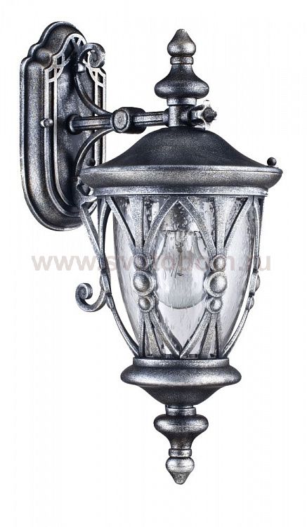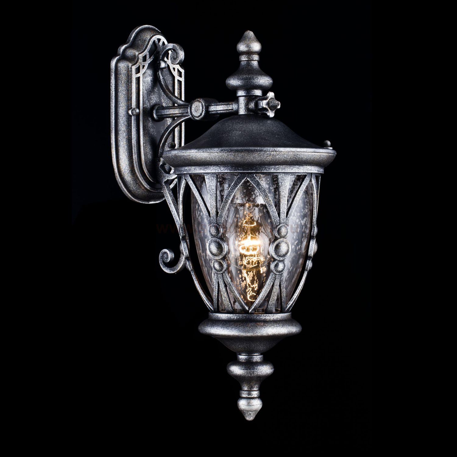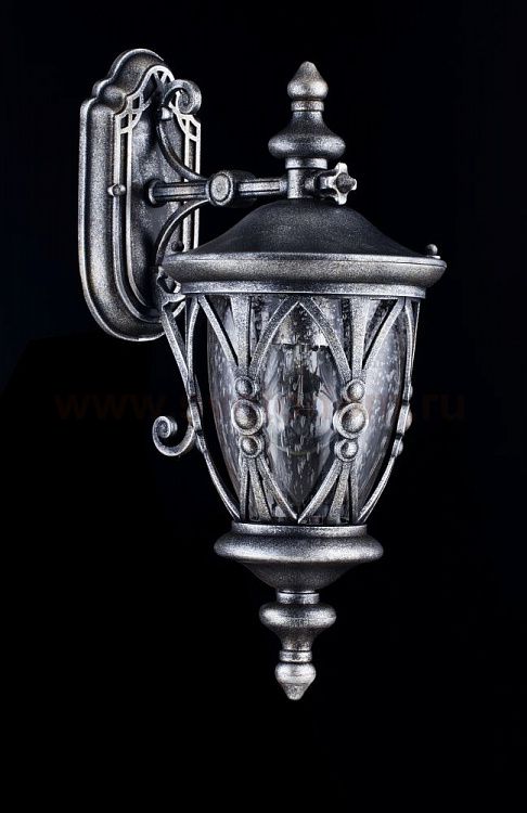 Корпус из металла устойчивый к перепадам температуры. Покрытие необычного цвета «античного золота» и черного. Плафон из прозрачного фактурного стекла. Дополнительно