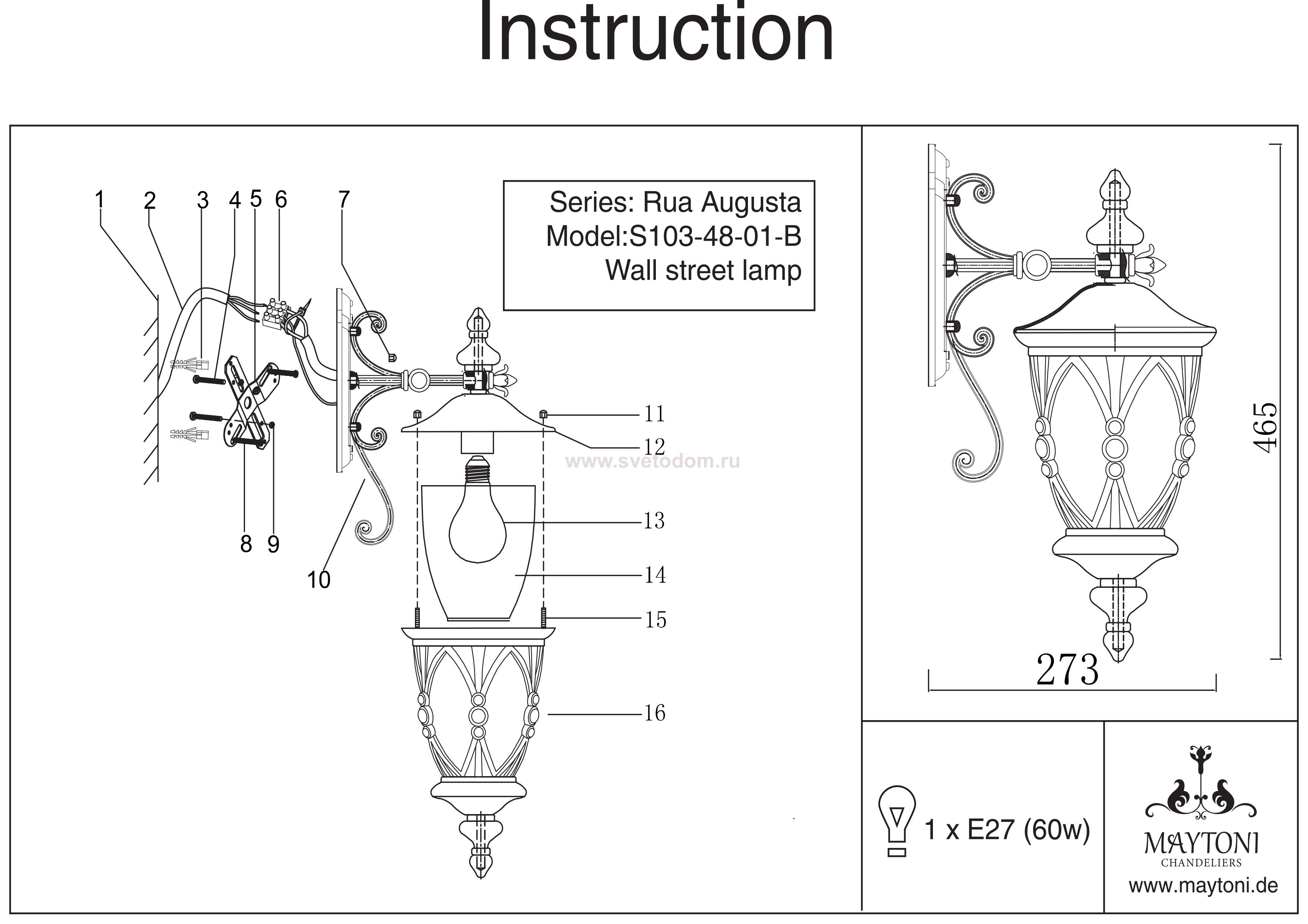 100 Отзывы Светильник уличный Maytoni S103-48-01-B Rua AugustaПока нет отзывов об этом товаре, напишите и он обязательно появится после модерации! Оставить свой отзывПохожие товары Другие товары магазина Фото