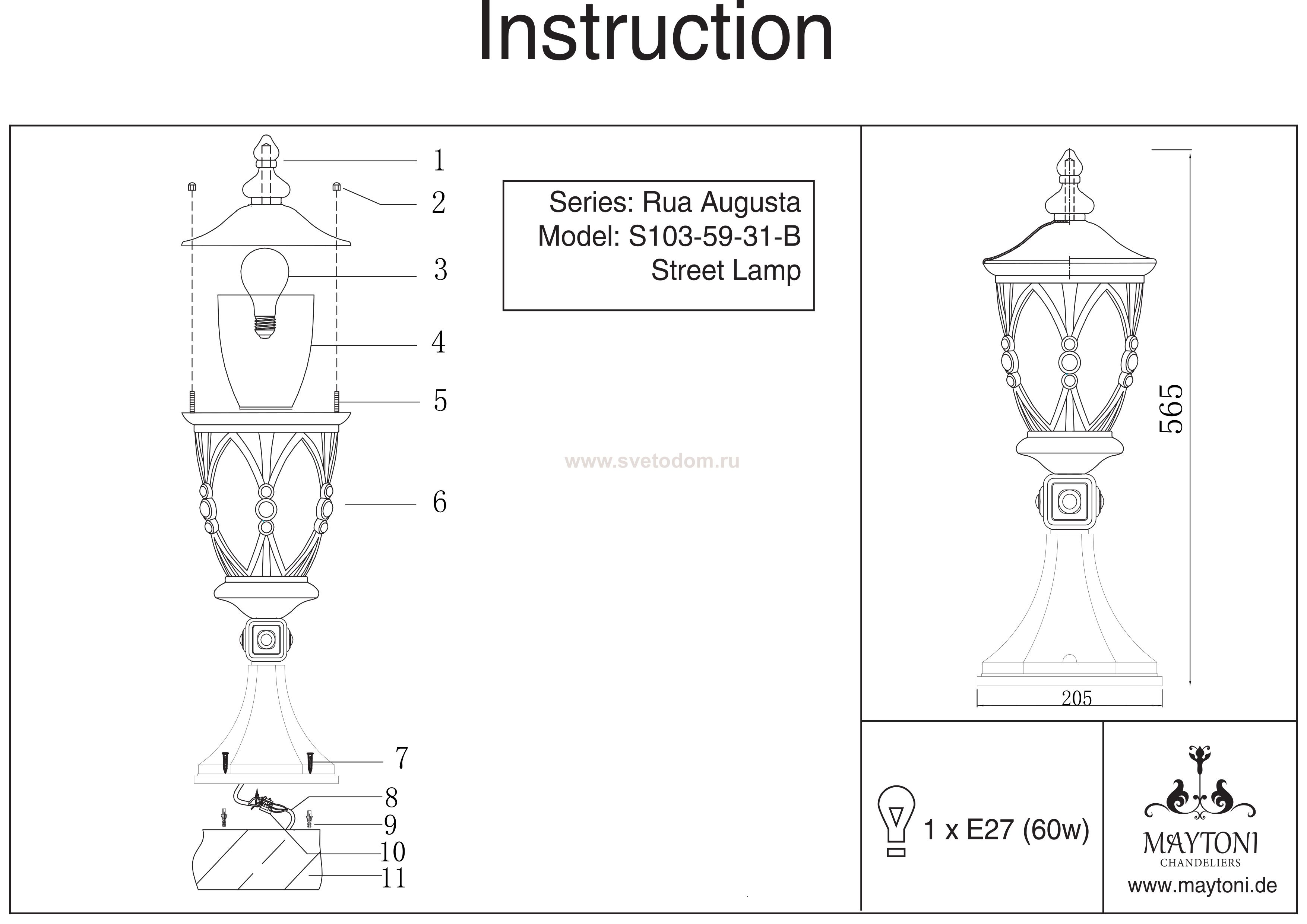 100 Отзывы Светильник на столб Maytoni S103-59-31-B Rua AugustaПока нет отзывов об этом товаре, напишите и он обязательно появится после модерации! Оставить свой отзывПохожие товары Другие товары магазина Фото