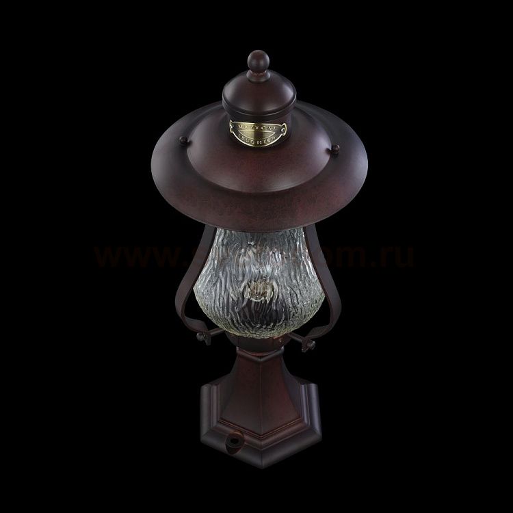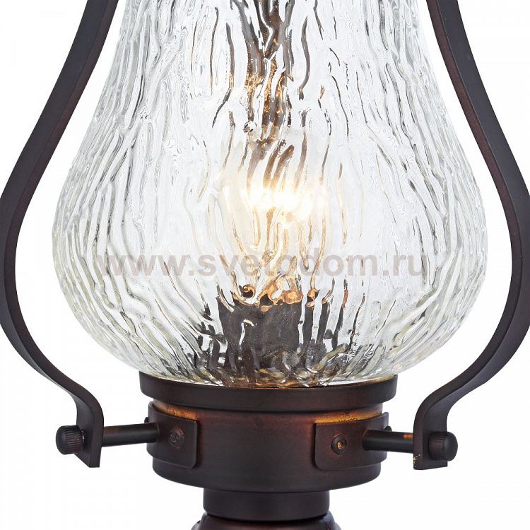 Корпус из металла, устойчивый к перепадам температуры. Фирменная гравировка. Плафон из прозрачного фактурного стекла. Дополнительно