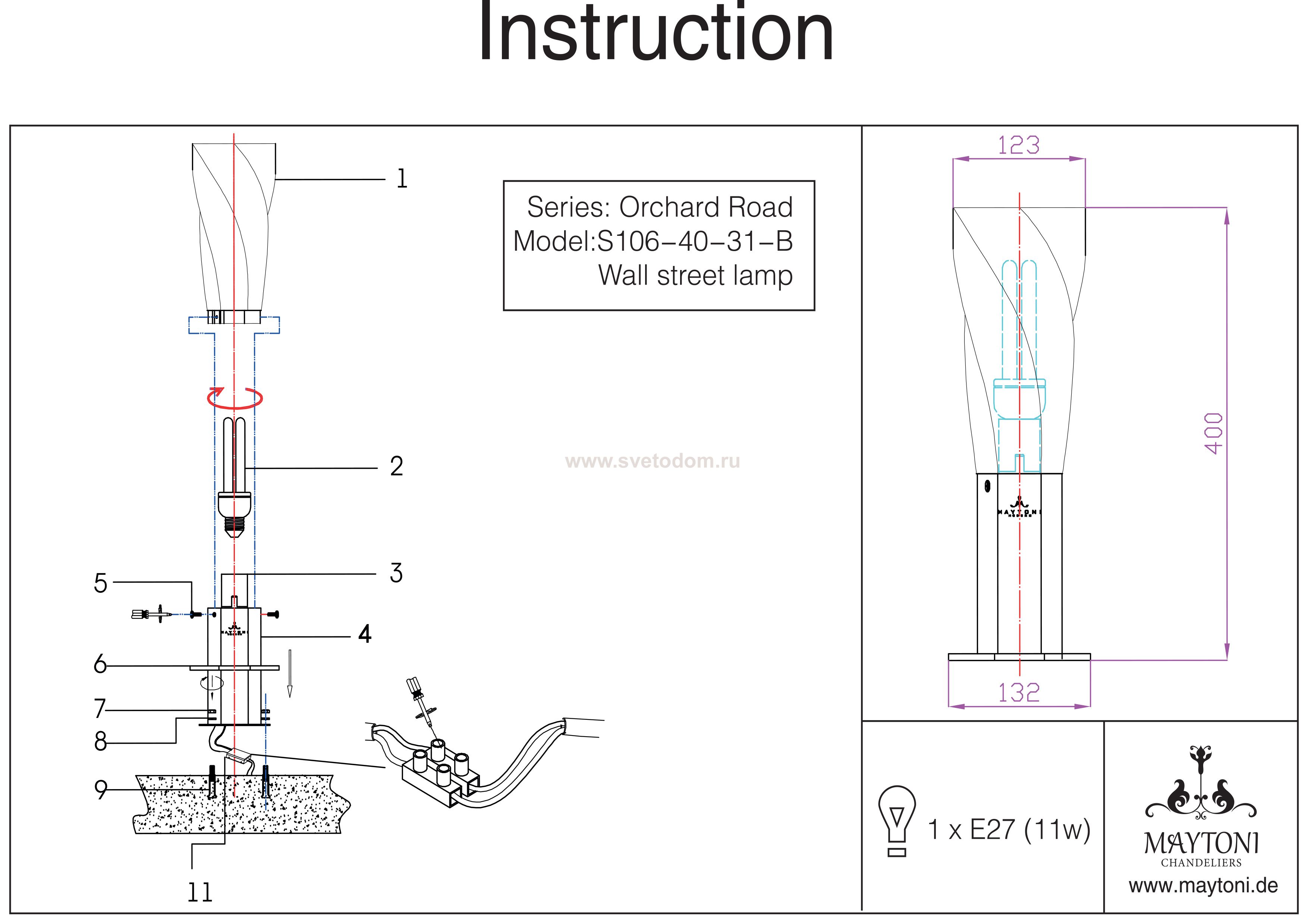 Обеспечение качественного уличного освещения – важная задача для владельцев коттеджей. Компания «Светодом» предлагает современные светильники, которые порадуют Вас отличным исполнением. В нашем каталоге представлена продукция известных производителей, пользующихся популярностью благодаря высокому качеству выпускаемых товаров. Уличный светильник Maytoni S106-40-31-B не просто обеспечит качественное освещение, но и станет украшением Вашего участка. Модель выполнена из современных материалов и имеет влагозащитный корпус, благодаря которому ей не страшны осадки. Купить уличный светильник Maytoni S106-40-31-B, представленный в нашем каталоге, можно с помощью онлайн-формы для заказа. Чтобы задать имеющиеся вопросы, звоните нам по указанным телефонам. |