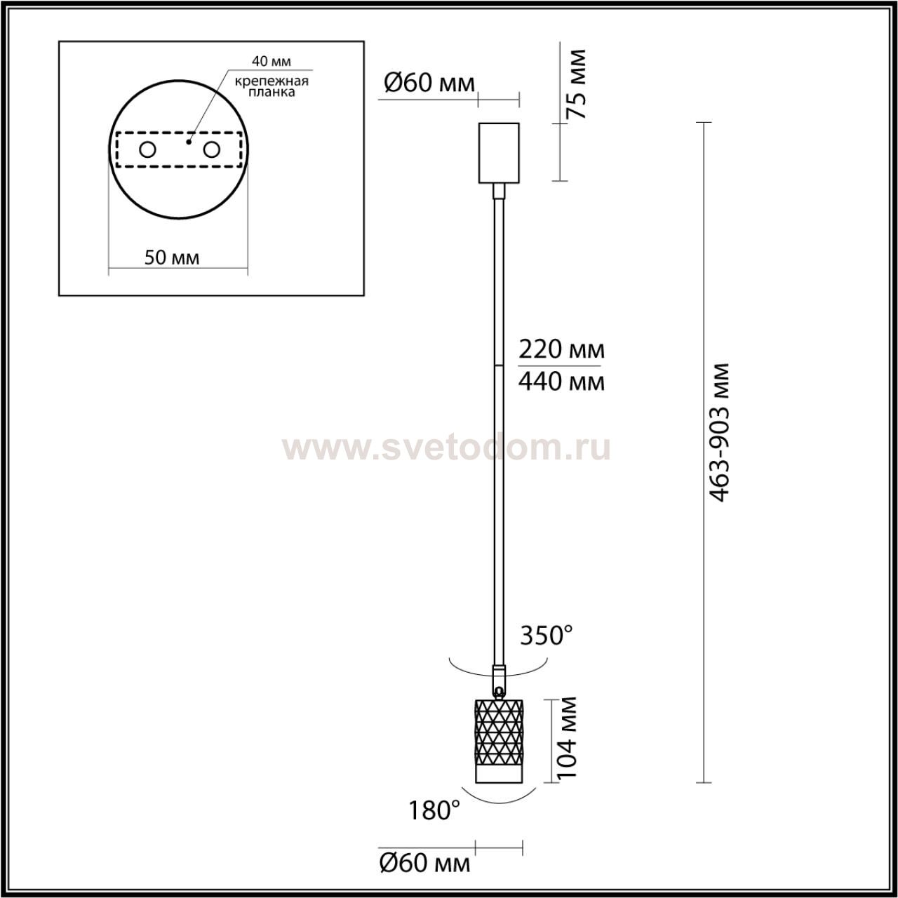 Данное значение указывает угол поворота, на который может поворачиваться светильник или угол рассеивания, на который светит лампа