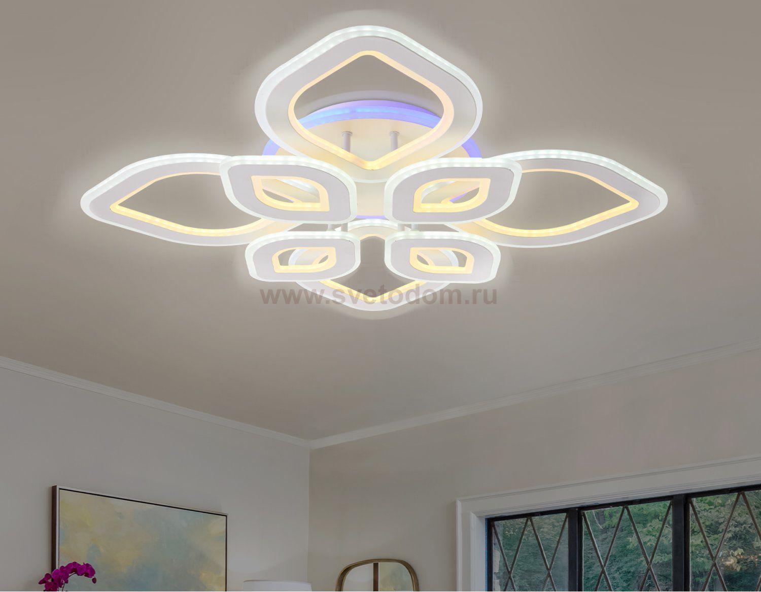 Потолочный светодиодный светильник из серии ACRYLICA, коллекция Ice. Непревзойденная модель FA8844 выполнена в современном стиле Хай-тек. Светильник белого цвета, изготовлен из акрила и металлического корпуса. В конструкцию этого светильника уже встроены светодиоды, что исключает поиск или замену дополнительных ламп. С помощью мобильного приложения и радиоуправляемого пульта вы сможете регулировать цветовую температуру, яркость освещения и ночной режим. Эти светильники подходят для натяжных потолков и будут прекрасным дополнением в гостиной, спальне или детской комнате.