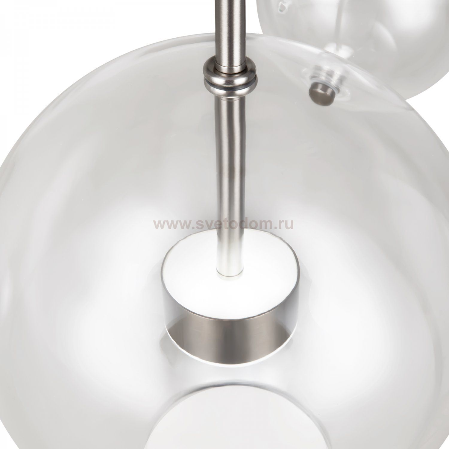 Материал арматуры – металл, цвет – латунь. Плафон – прозрачное глянцевое стекло. Трендовая сферическая форма. Энергоэффективные LED-источники обеспечивают равномерный яркий свет.