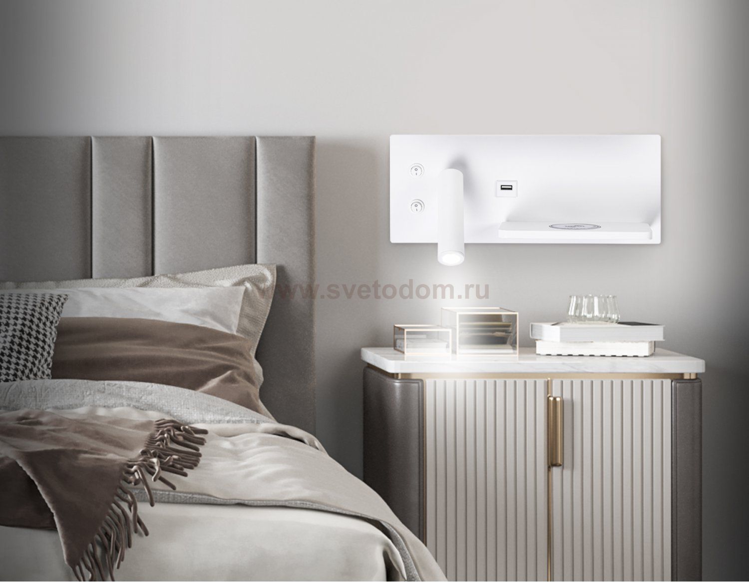настенный светодиодный светильник, USB порт, беспроводная зарядка Штрих-код