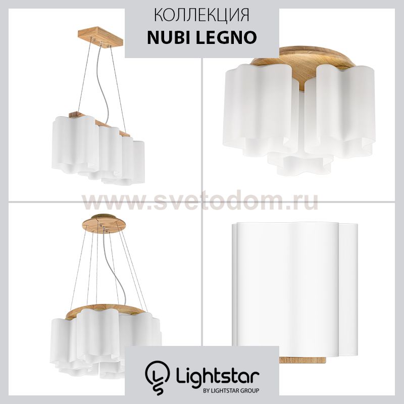 Модели из новой коллекции Nubi Legno отличаются близостью к скандинавскому стилю. Они выполнены в классическом для Севера цветовом сочетании: белоснежно-матовые стеклянные плафоны и корпус цвета светлого дерева. Волнистые плафоны кажутся невесомыми складками ткани, в глубине которых спрятались лампочки. Плотная матовость стекла смягчает их лучи, рассеивая свет в пространстве. Когда светильник Nubi Legno включен, он окрашивается изнутри теплым светом, как облако, наполненное солнечными лучами.