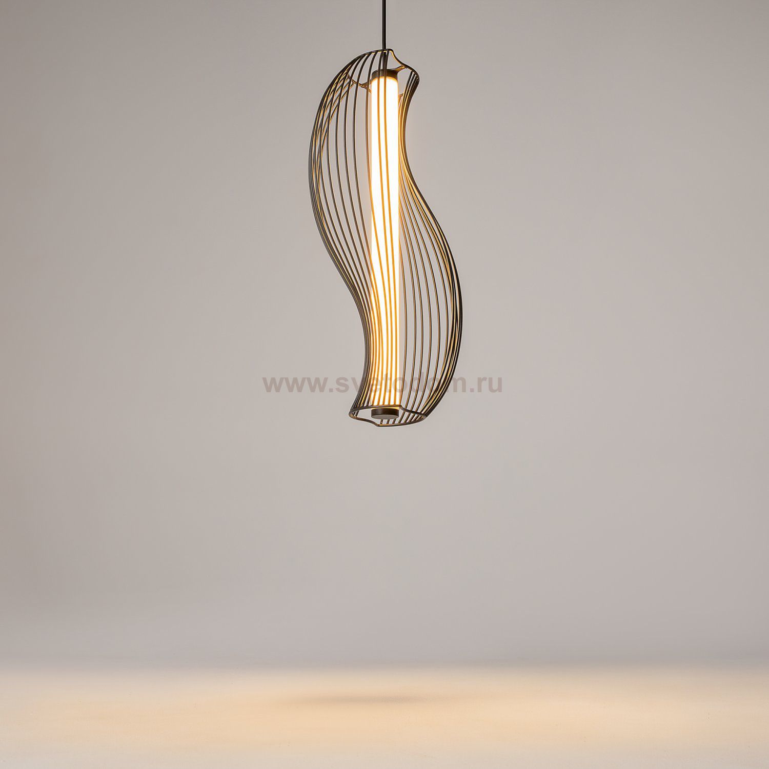 Два цветовых решения: черный и латунь. Абажуры из проволоки в асимметричном исполнении. Оригинальный дизайн, вдохновленный силуэтами античных амфор. Центральный LED-источник света с матовым рассеивателем. Регулируемая высота подвеса и провод длиной 3 метра. Возможность создания композиций.
