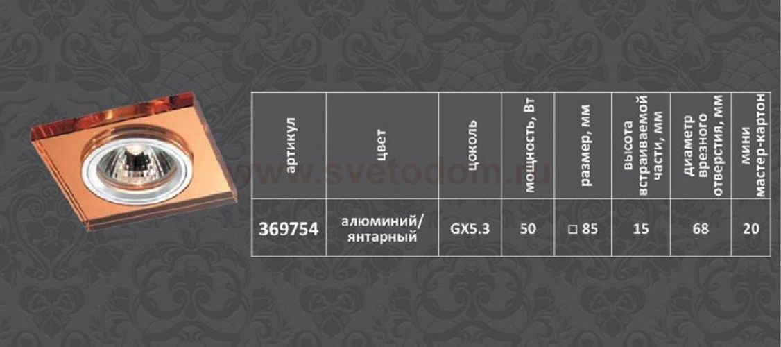 Декоративный встраиваемый светильник Артикул производителя
