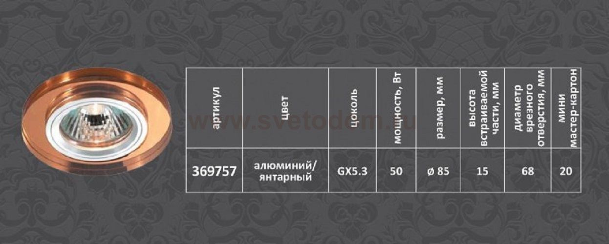 Декоративный встраиваемый светильник модели Novotech 369757 из серии MIRROR отличается следующим качеством: Основание светильника сделано из алюминия. Это лёгкий металл, основными достоинствами которого являются — устойчивость к практически всем видам негативного воздействия окружающей среды, коррозии, небольшой вес, по сравнению с другими видами металла и экологическая безопасность материала. Декоративный плафон произведен из хрусталя. Он обладает высоким показателем плотности, прозрачности и блеска. Благодаря содержанию свинца (не менее 30%) и определённому подбору углов, образуемых гранями, изделия из хрусталя отличаются необыкновенно яркой, многоцветной игрой света, чарующей магией красоты, совершенства и роскоши.