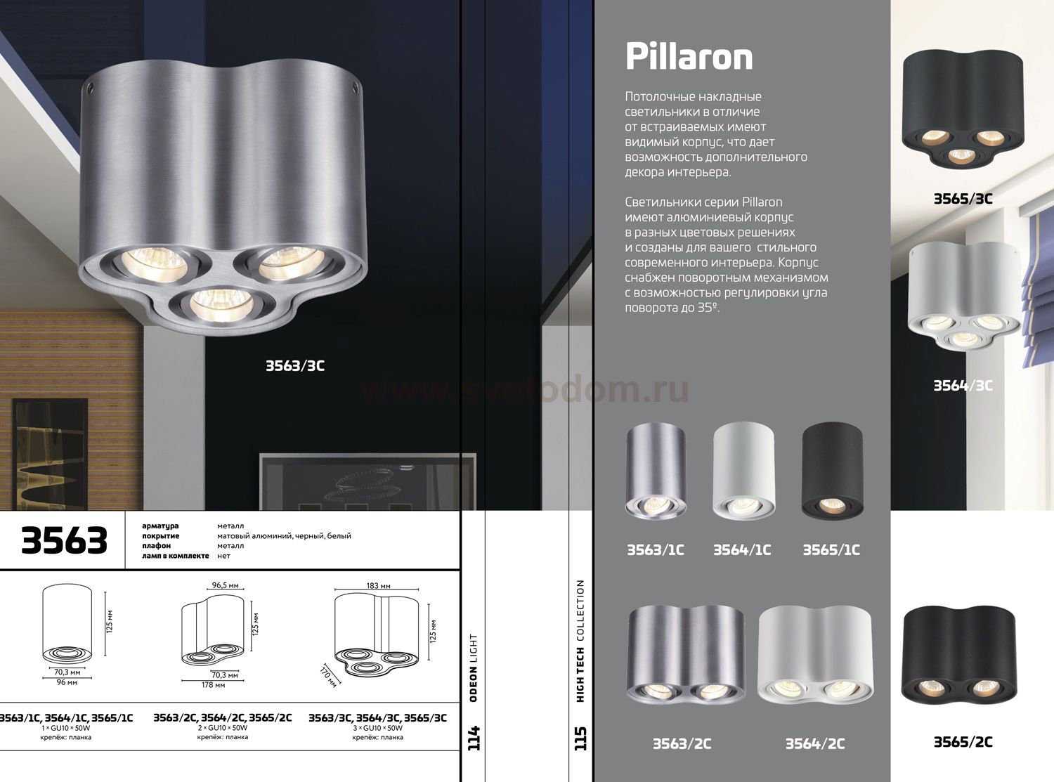 3565/1C HIGHTECH ODL18 209 черный Потолочный накладной светильник IP20 GU10 1*50W 220V PILLARON Штрих-код