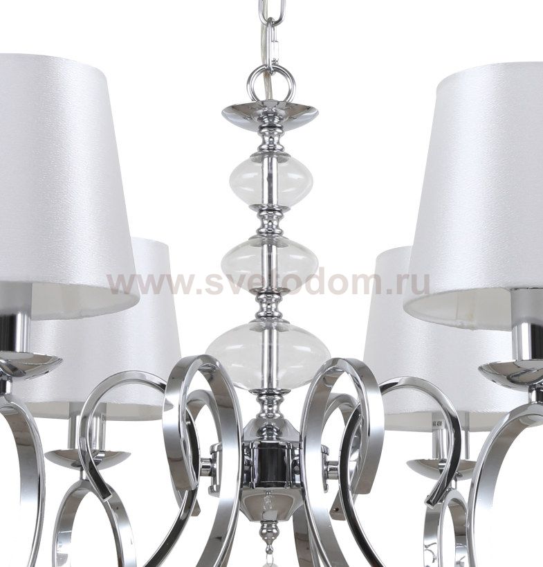 Люстра подвесная 1043/09/06P Stilfort серии Zafira выполнена в классическом стиле. Арматура, изготовленная из хромированного металла, украшена декоративными подвесными элементами. Плафоны люстры выполнены из ткани в белом цвете.
