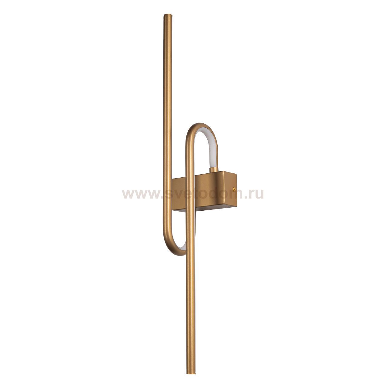 Металлическое основание настенного бра и плафоны из сплава алюминия окрашены в золотой цвет. Светодиодный источник света закрыт белым матовым силиконом. Комментарий