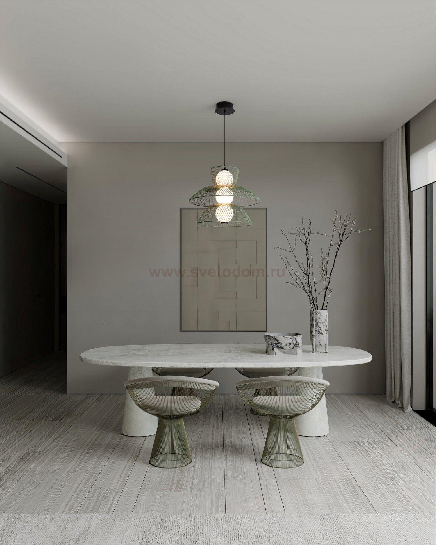 Материал арматуры — металл, цвет — серо-бежевый. Подвесной светильник оснащен LED источником света. Диаметр светильника составляет 400 мм. . Особенность серии — окраска в актуальные оттенки, включая серо-бежевый (RAL 1019), резедово-зеленый (RAL 6011), каменно-сером (RAL 7030).