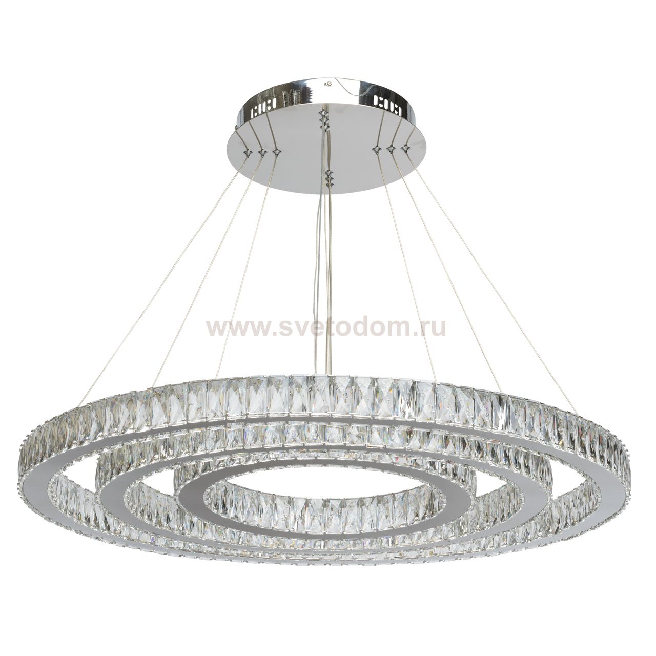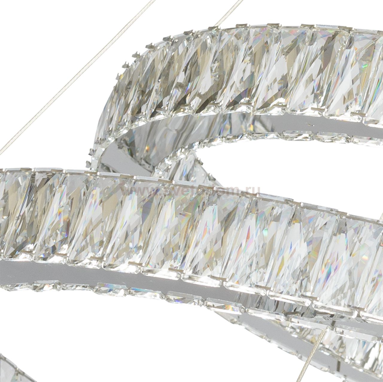 Основание выполнено из сплава металла, гальванизировано в цвет хрома. Каркас светильника выполнен из нержавеющей стали. С двух сторон светильник декорирован хрусталем сложной огранки с множеством центров схождения граней. Светодиоды на микросхемах. Световая температура 4000 - 4200 К. Лампы в комплекте. Комментарий