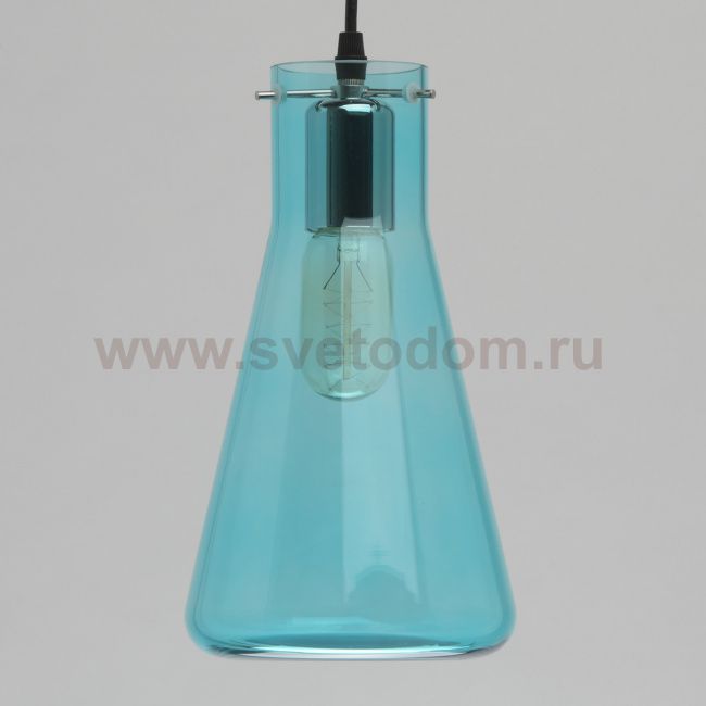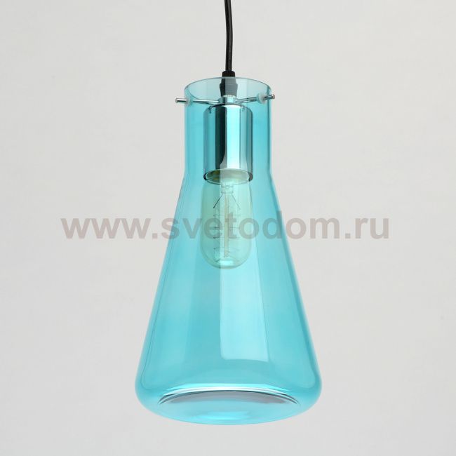 Основание светильника выполнено из металла и окрашено в черный цвет. Плафон выполнен из стекла, отлитого в форму и окрашенного в массе в голубой цвет. Комментарий