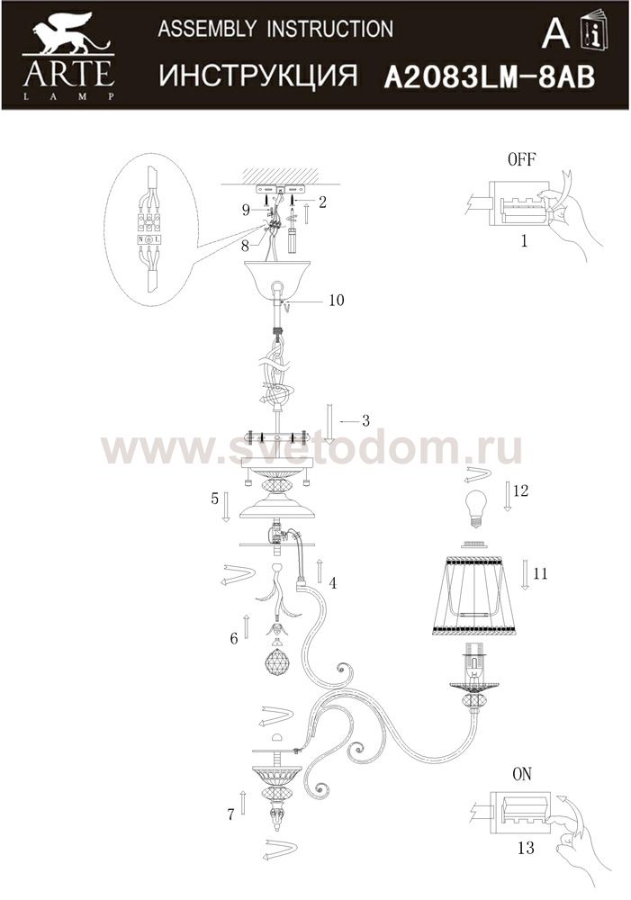 Компания «Светодом» предлагает широкий ассортимент люстр от известных производителей. Представленные в нашем каталоге товары выполнены из современных материалов и обладают отличным качеством. Благодаря широкому ассортименту Вы сможете найти у нас люстру под любой интерьер. Мы предлагаем как классические варианты, так и современные модели, отличающиеся лаконичностью и простотой форм. Стильная люстра Arte lamp A2083LM-8AB станет украшением любого дома. Эта модель от известного производителя не оставит равнодушным ценителей красивых и оригинальных предметов интерьера. Люстра Arte lamp A2083LM-8AB обеспечит равномерное распределение света по всей комнате. При выборе обратите внимание на характеристики, позволяющие приобрести наиболее подходящую модель. Купить понравившуюся люстру по доступной цене Вы можете в интернет-магазине «Светодом».