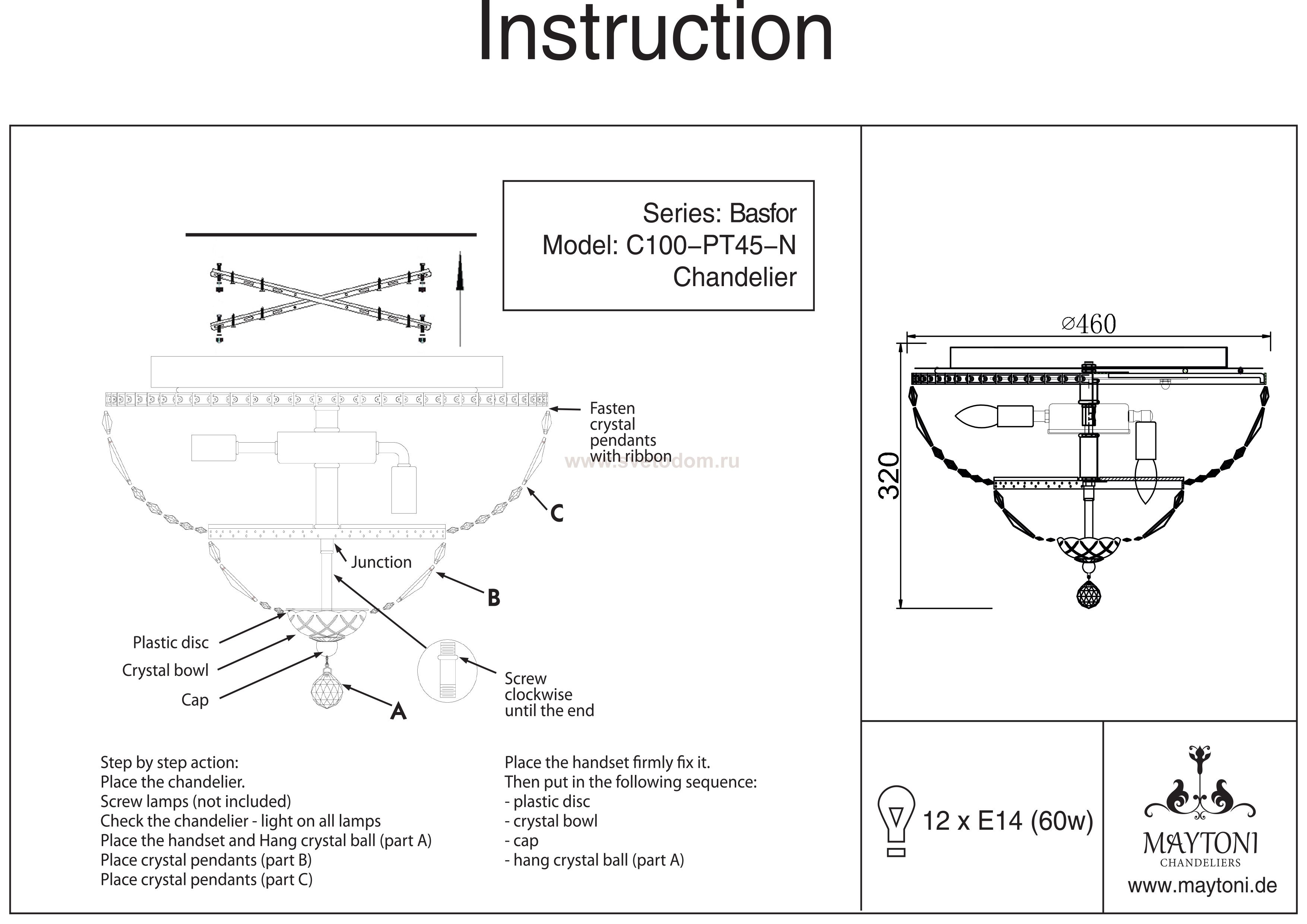 Особенности модели DIA100-CL-12-N: Кристаллы ромбовидной огранки украшают светильники серии Basfor. Они закреплены на многоярусный металлический каркас с гальваническим покрытием золотого или никелевого цвета. Предоставляется дополнительный год гарантии.