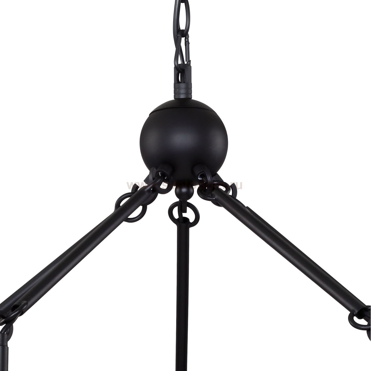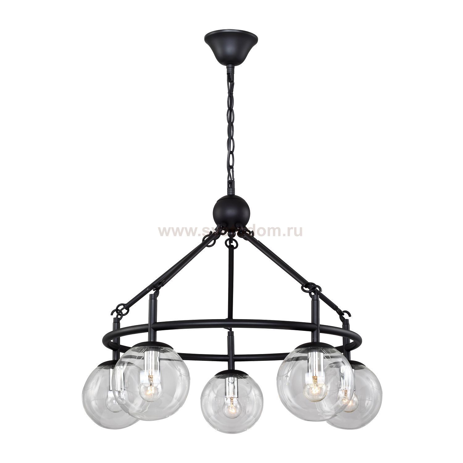 Каркас окрашен в черный цвет и оформлен прозрачными стеклянными выдувными плафонами в виде шара. Материал плафона