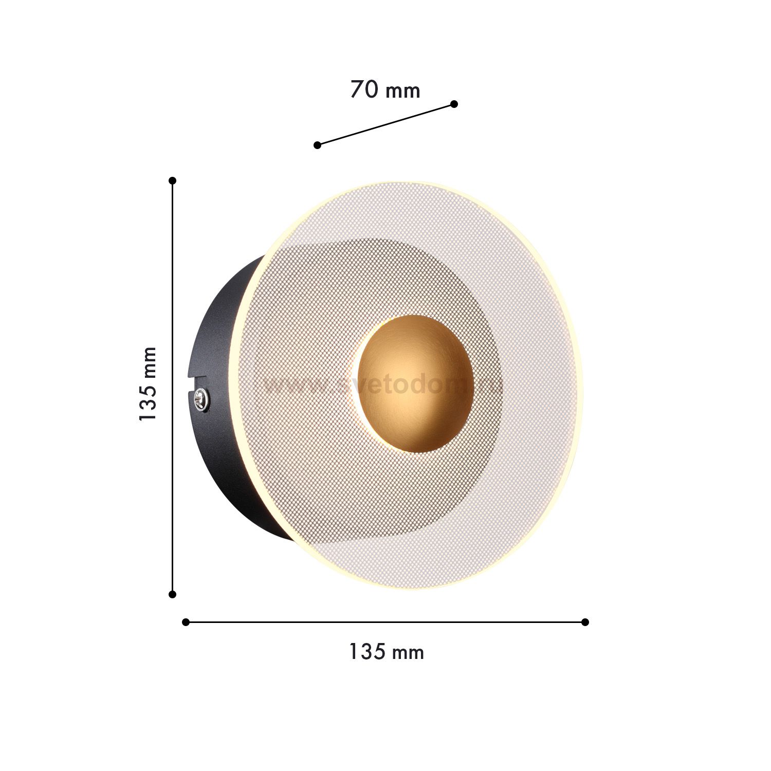Настенный светильник с черным матовым каркасом, цилиндрическим плафоном из акрила с латунной сердцевиной. По внутреннему периметру диска на стыке с пл Серия