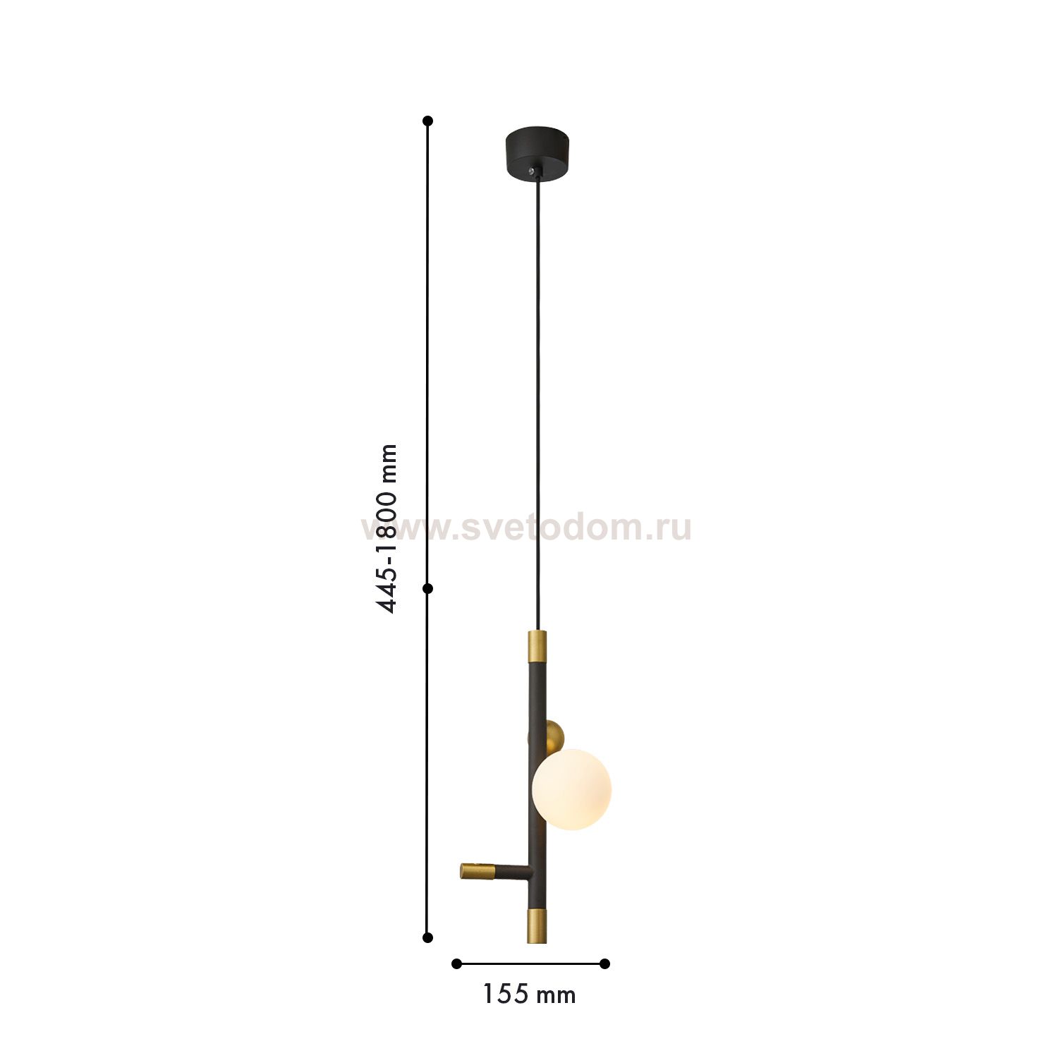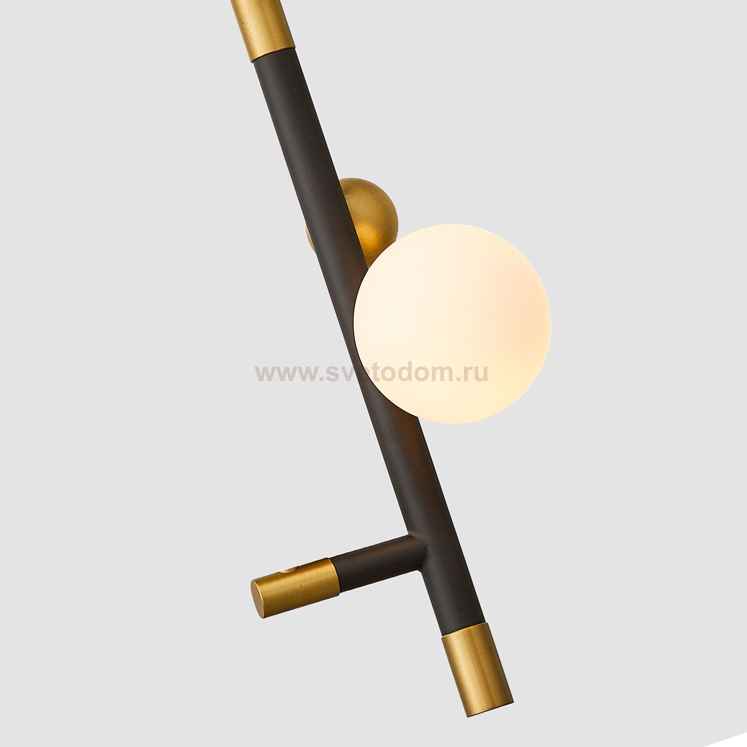 Подвес с черным матовый каркасом, круглый белый плафон выполненный из выдувного стекла, золотой декоративный элемент в виде птицы, регулируемая высота Декор