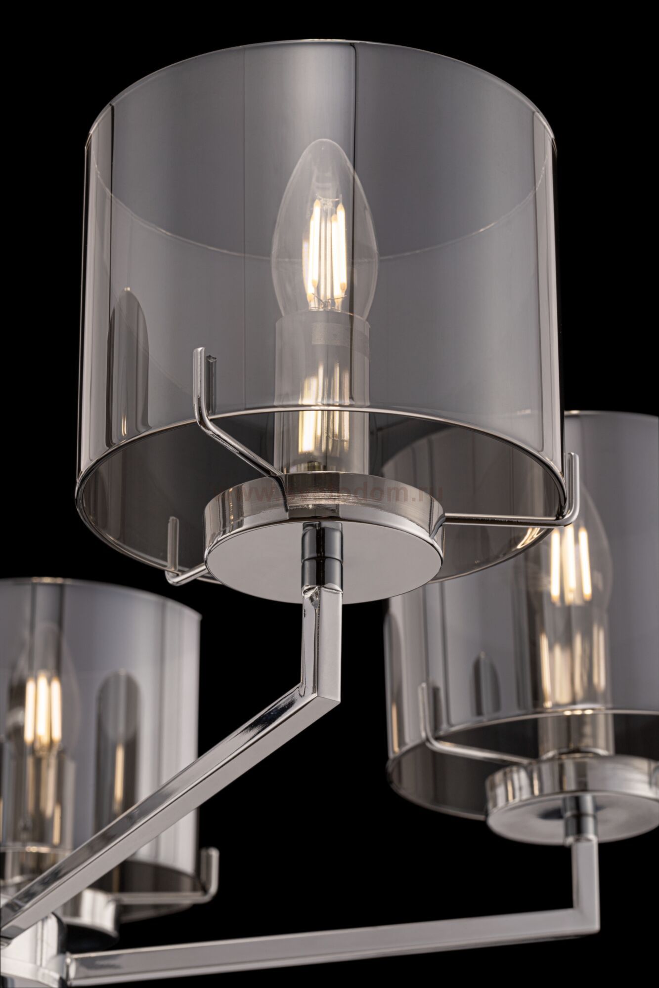 Хромированная металлическая арматура. Плафоны выполнены из дымчатого стекла. Гальваническое напыление создает зеркальный эффект. Плафоны крепятся на скобы, что облегчает эксплуатацию. Источник света – лампа с цоколем E14.