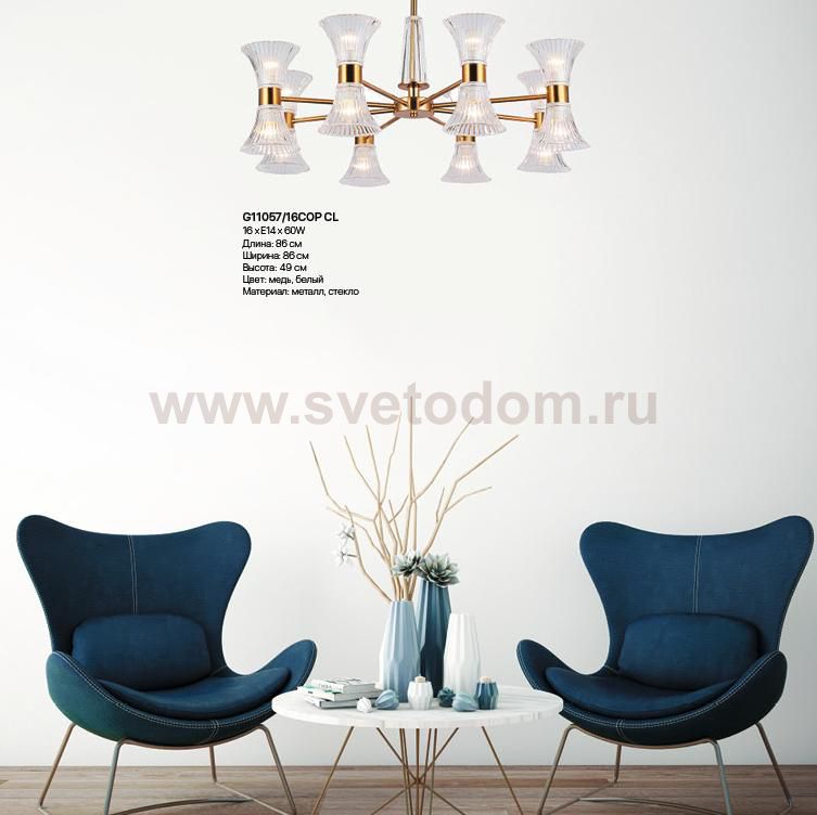 Потолочная люстра G11057/16COP CL от бренда Gerhort. Каркас выполнен из материала металл, цвет медь. Плафоны (светорассеиватели) выполнены из материала стекло, цвет прозрачный. Цоколь E14 рассчитан на лампы максимальной мощности до 60 Вт, а максимальная площадь освещения составит до 36 м?.
